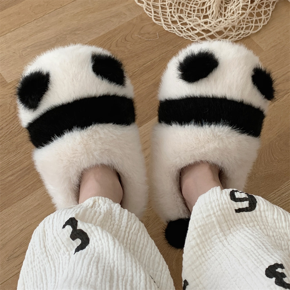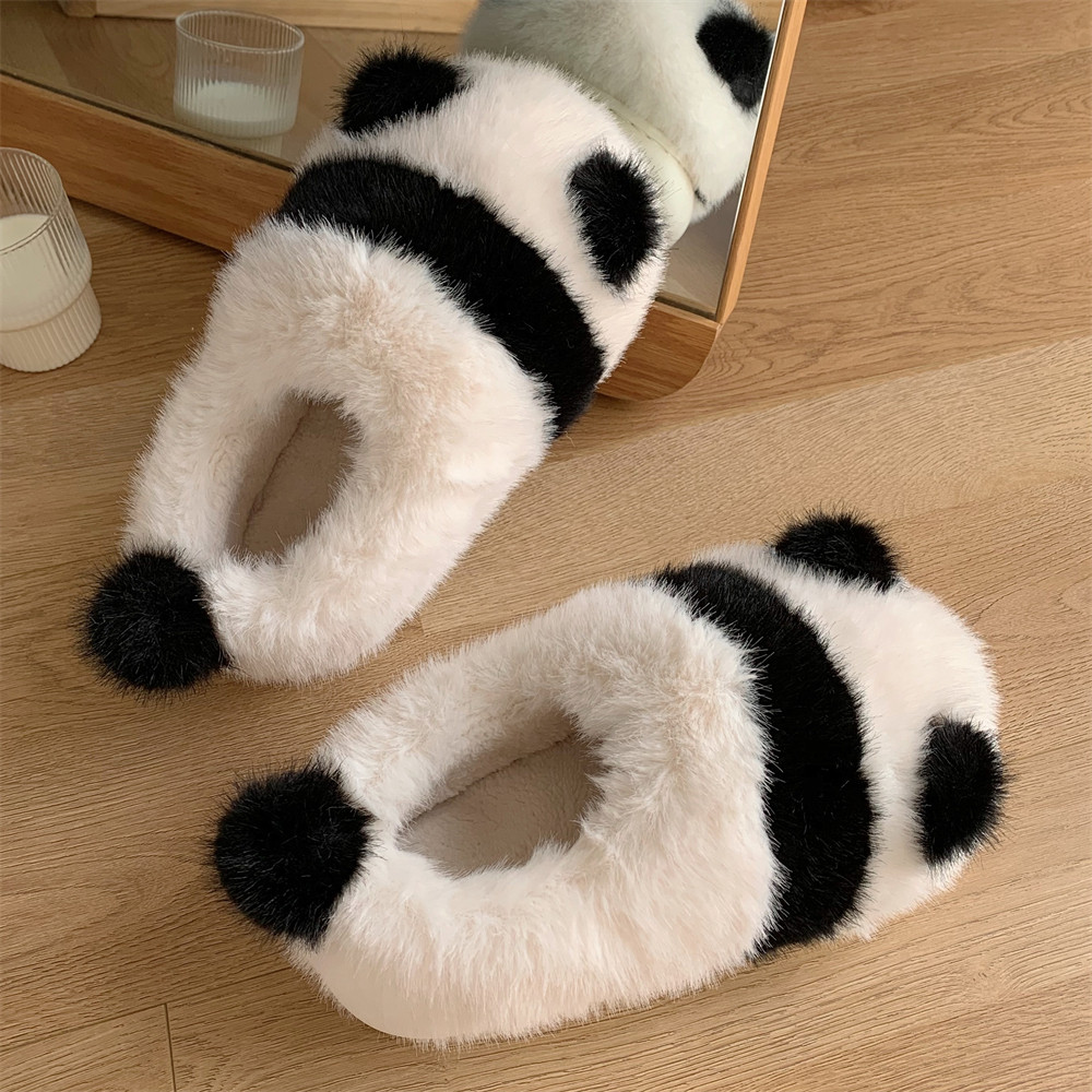细细条 熊猫包跟棉拖鞋女冬季可爱居家室内防滑保暖毛绒绒月子鞋