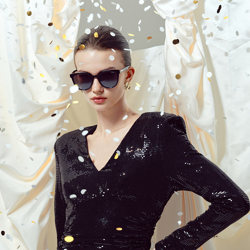 Polaroid宝丽来偏光墨镜方圆框猫眼女款太阳镜户外防紫外线0050