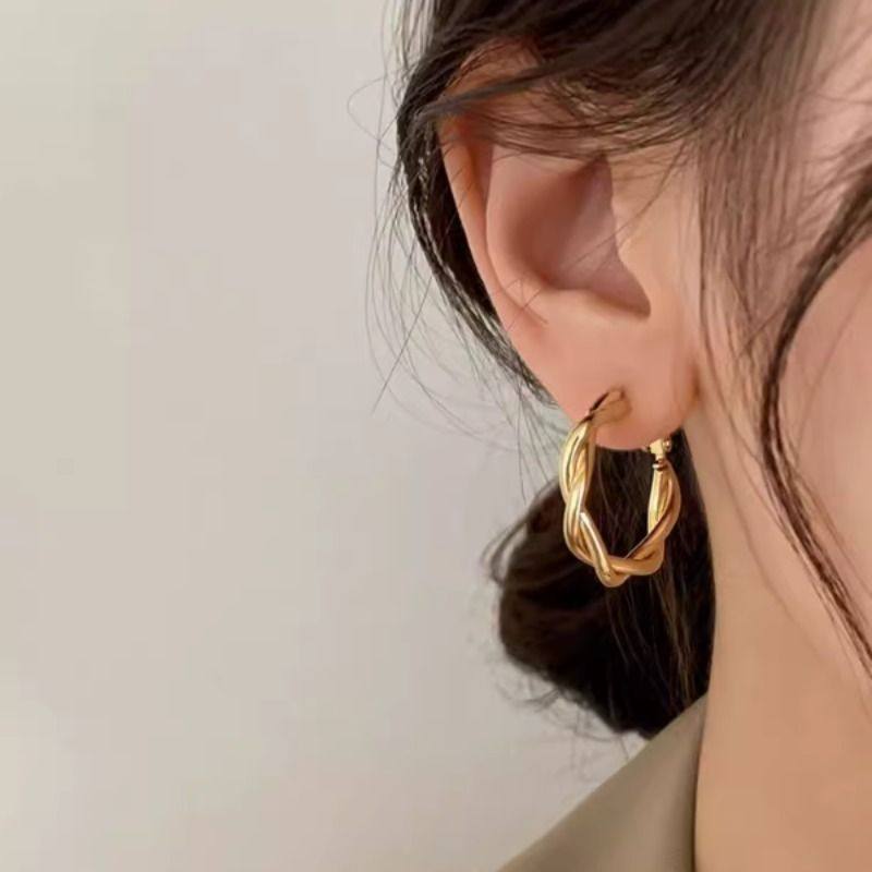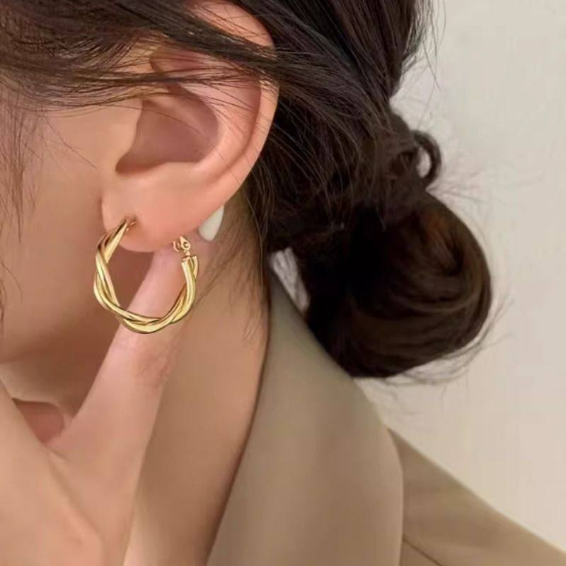 925银针麻花耳圈2025新爆款耳环轻奢耳钉小众高级感女耳饰