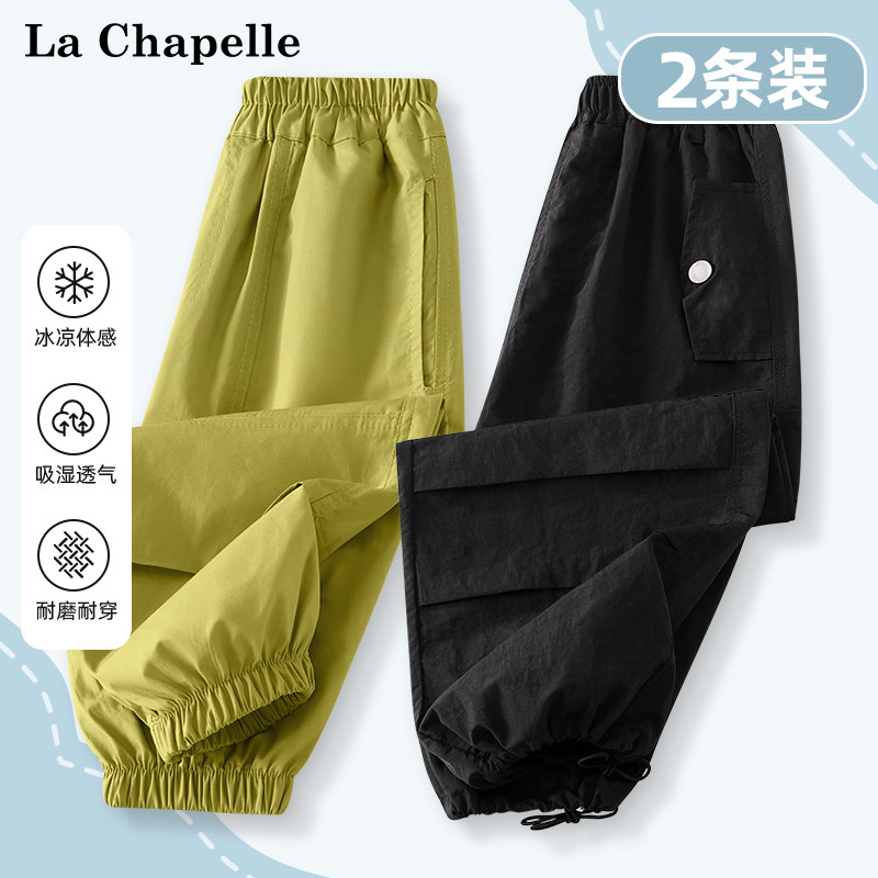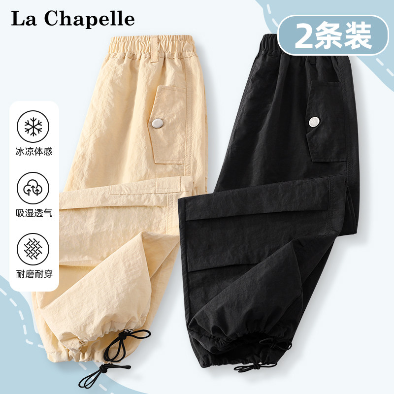 拉夏贝尔男童工装裤夏季2025新款儿童日系潮薄款大童直筒裤防蚊裤