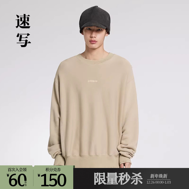 速写outlets奥莱男装春秋折扣新款卫衣棉质宽松圆领套头上衣潮流