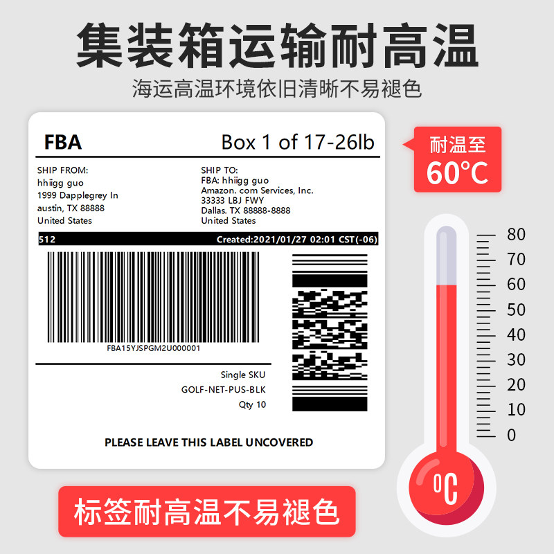 驰腾E邮宝亚马逊标签纸100x100热敏三防快递面单防窒息透明打印fba不干胶条码速卖驿站顺丰中申圆通空白贴纸