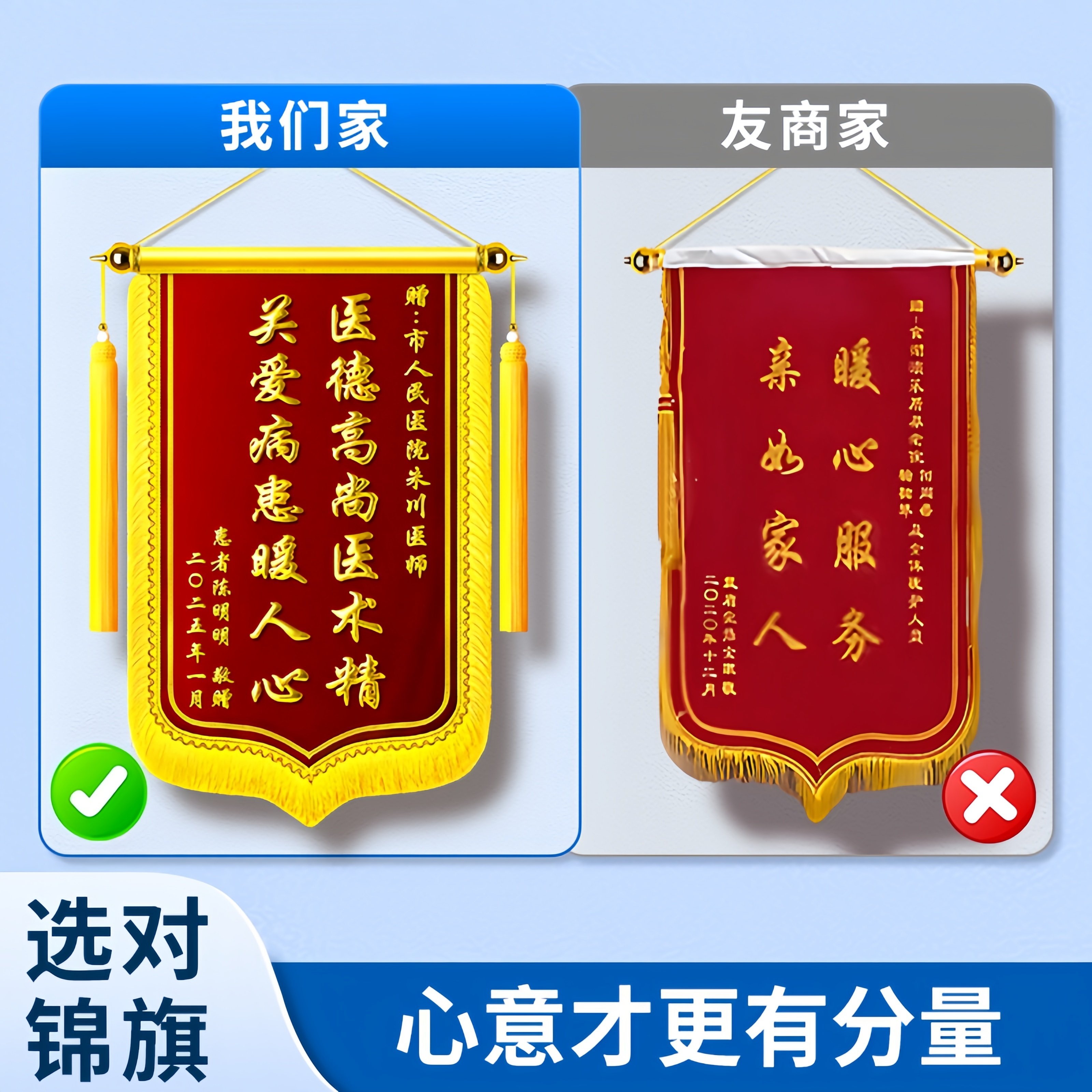 金丝绒高档锦旗定做定制感谢医生送幼儿园老师月嫂教师律师物业