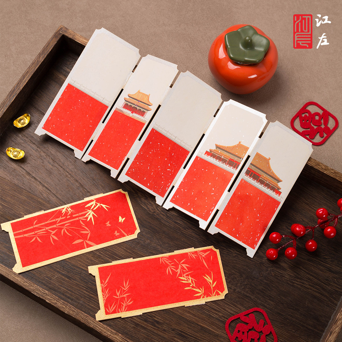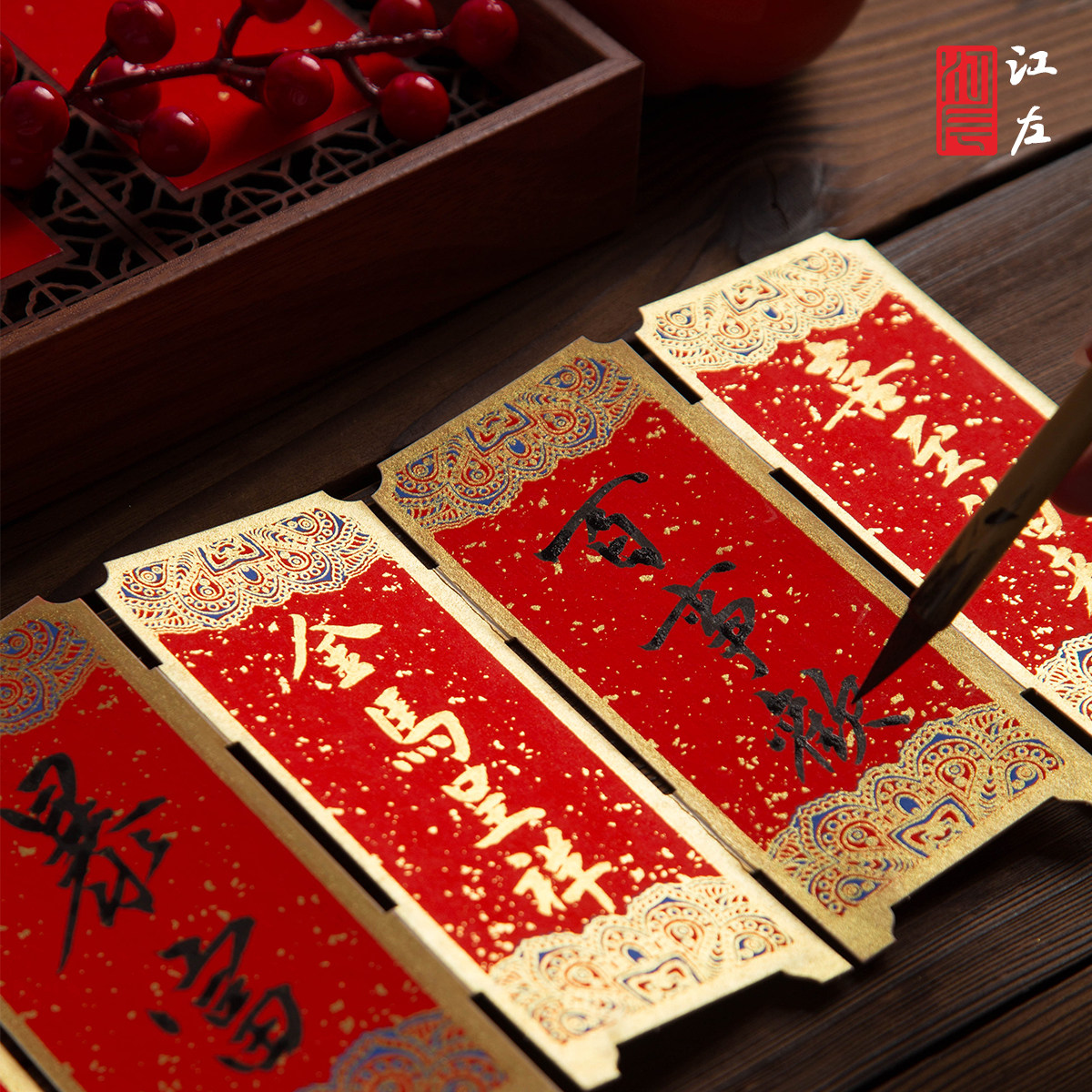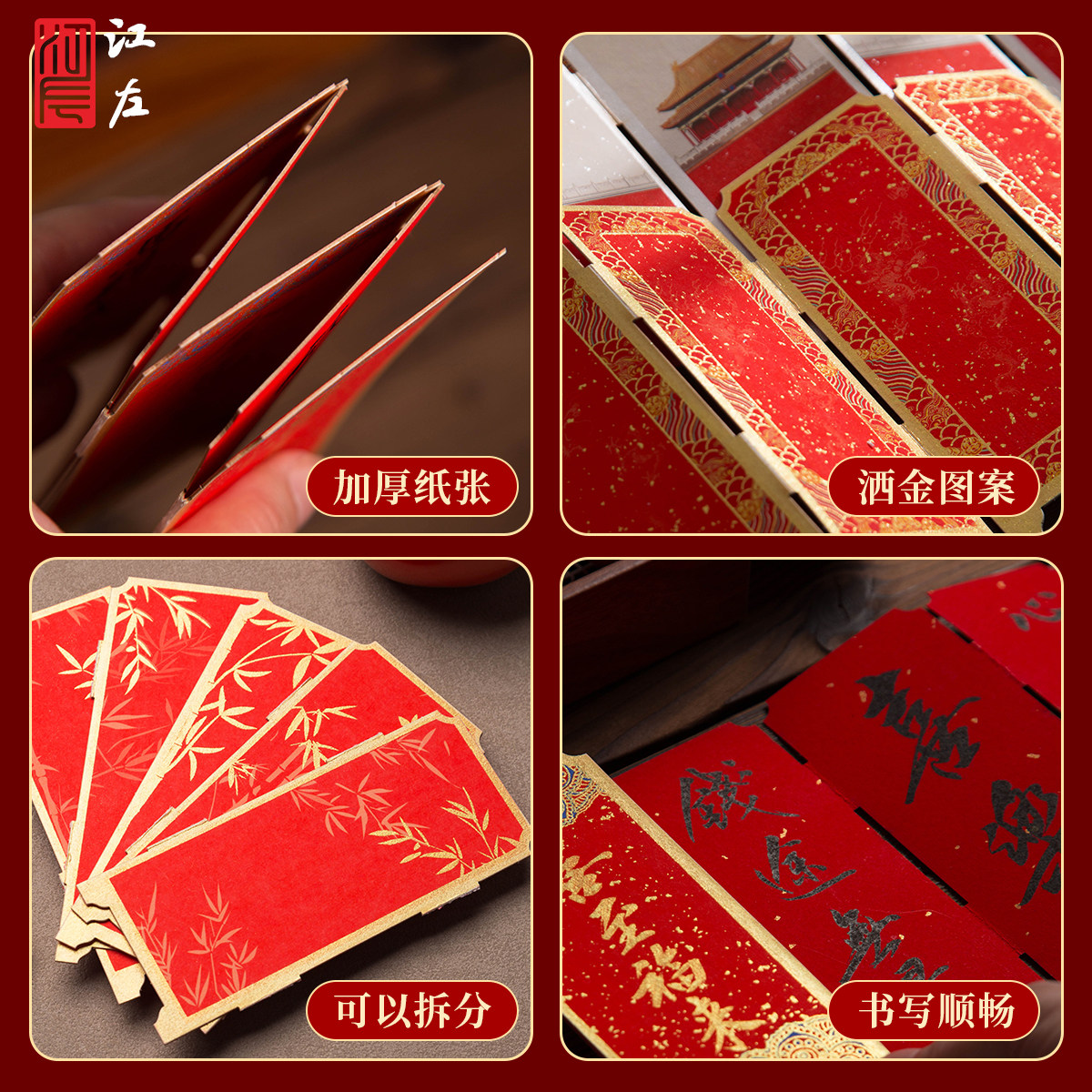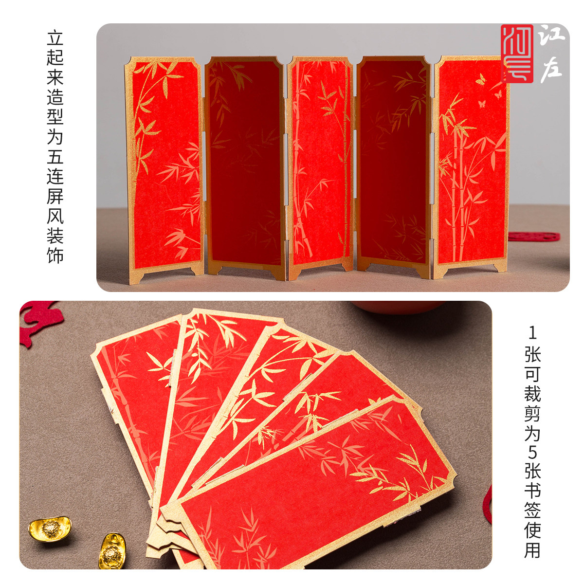 江左2026马年新款宫廷彩绘国风古典中国风宣纸屏风书签纸空白diy材料包手写福字小摆件毛笔书法专用纸万年红