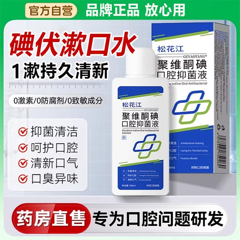 口腔专用碘伏漱口水杀菌除口臭持久香聚维酮碘含漱液药房国准字er