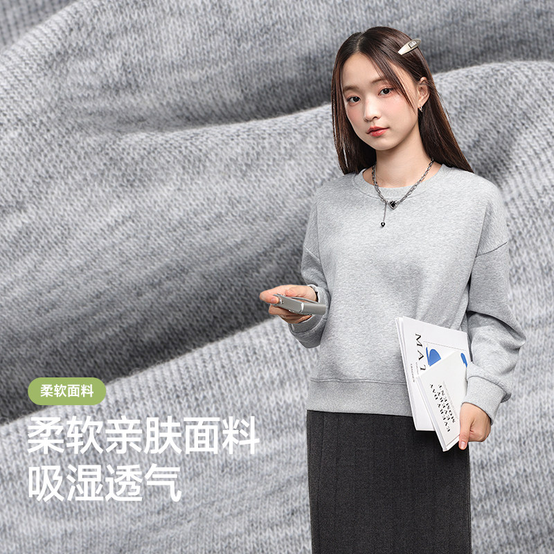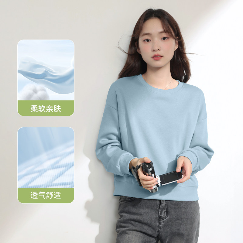 JR真维斯洋气长袖卫衣女秋季2025新款小个子短款圆领加绒上衣女士