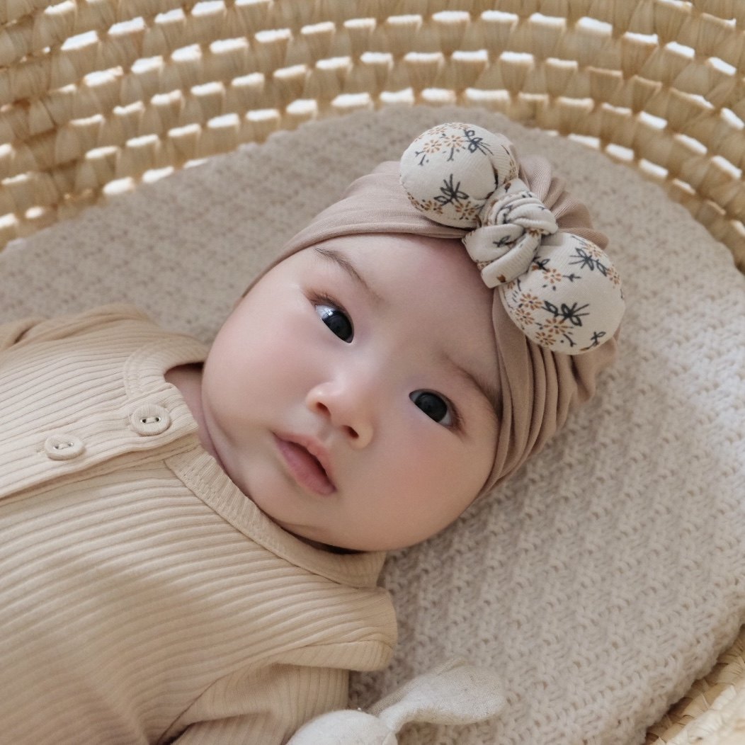 婴儿帽子春秋薄款可爱蝴蝶结莫代尔儿童新生儿女宝宝护囟门胎帽冬
