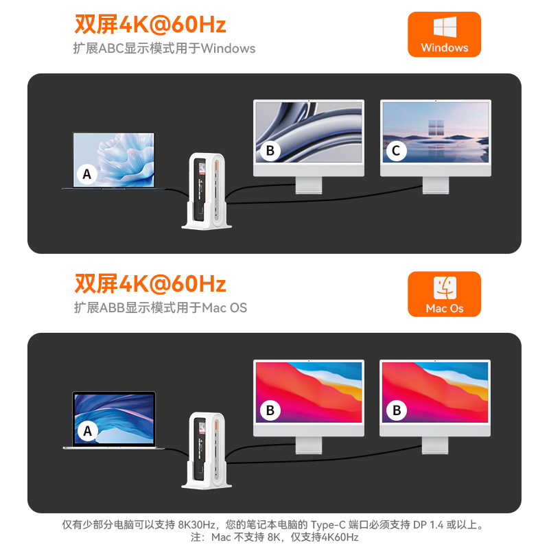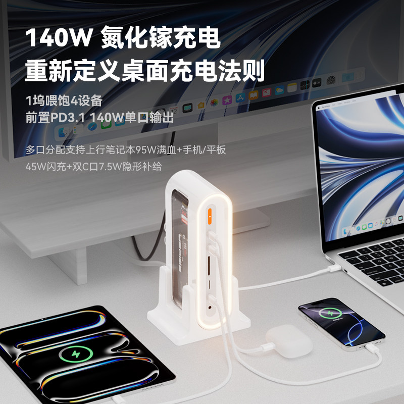 异泽13合1桌面拓展坞140W氮化镓充电器USB3雷电4多口立式typec扩展坞hub苹果笔记本Mac电脑m.2硬盘盒台式桌搭