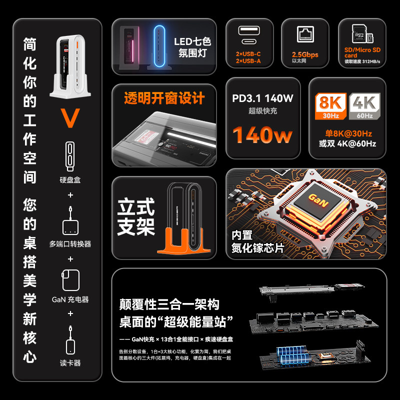 13合多功能扩展 140W氮化镓 M.2高速硬盘盒