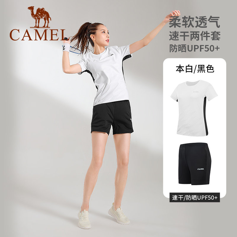 骆驼羽毛球服女套装训练服速干运动T恤短裤男网球服乒乓球上衣夏