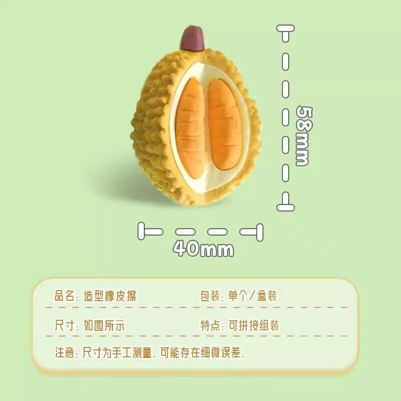 创意水果榴莲3D立体造型橡皮擦卡通儿童可拆卸少屑橡皮小学生奖品