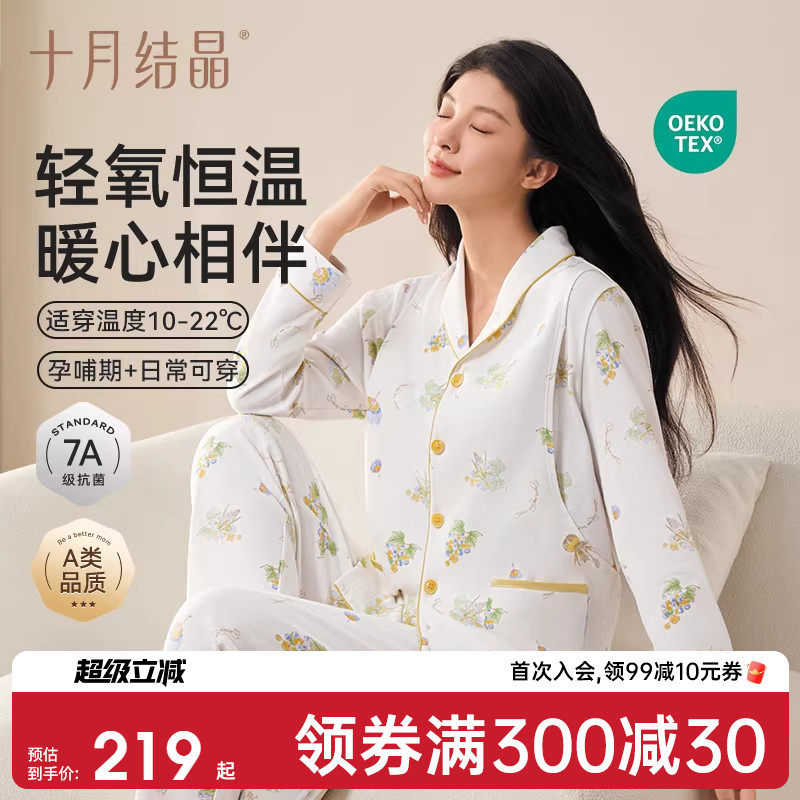 十月结晶月子服孕产妇胸垫哺乳睡衣产后纯棉怀孕期家居服套装秋季
