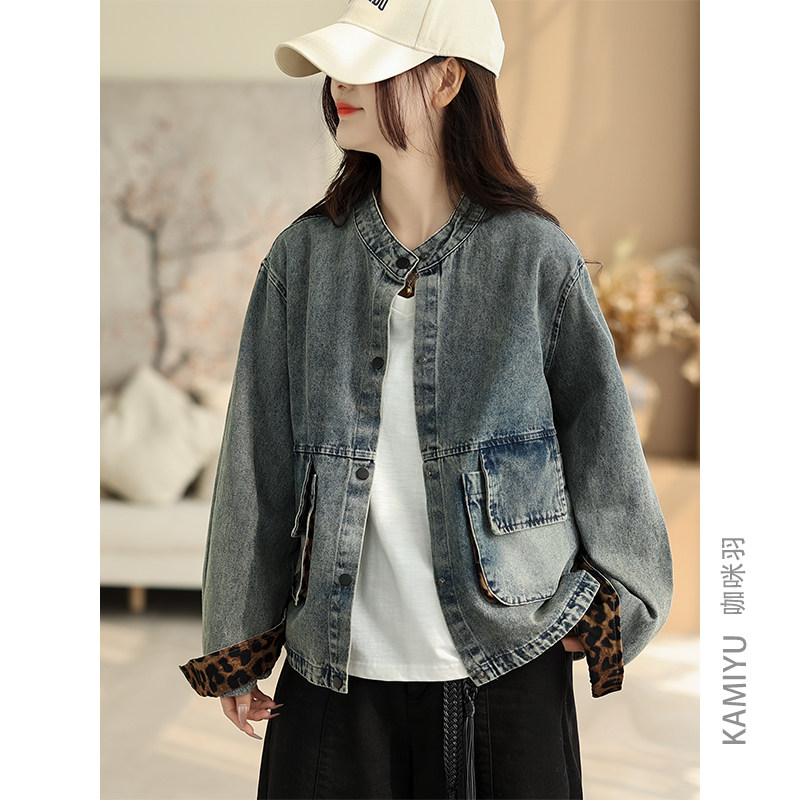 咖咪羽牛仔外套女秋季新款女士水洗复古拼接宽松通勤百搭女装上衣