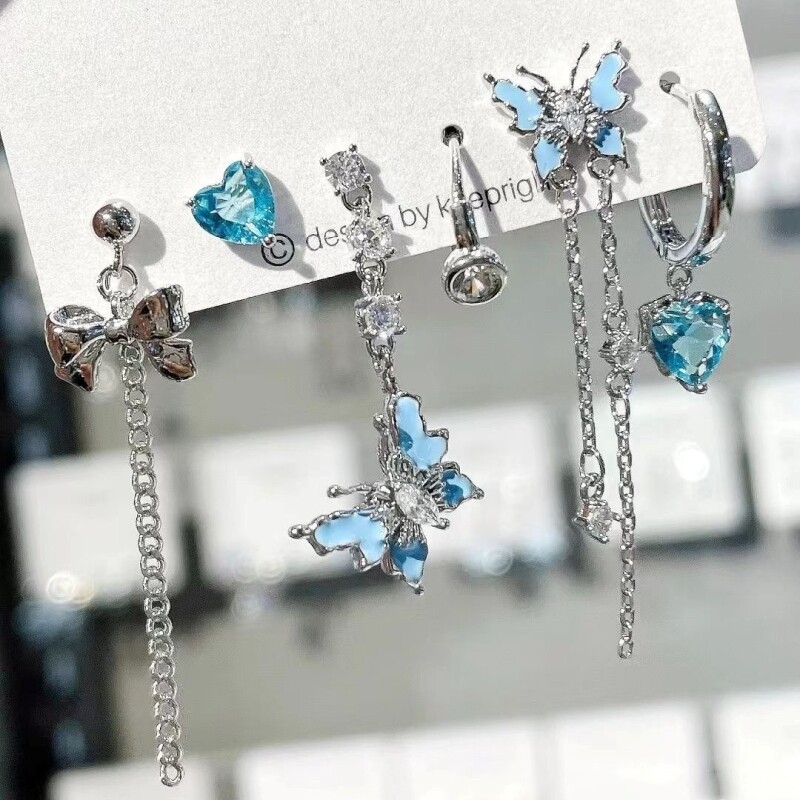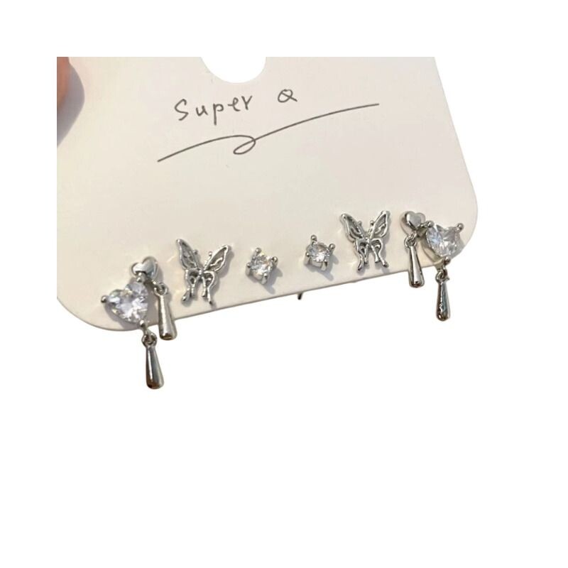 六件套~蝴蝶耳钉女ins小众精致气质高级耳环新款百搭耳饰锆石爱心