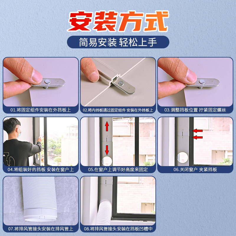 移动空调窗户挡板排风管移动空调挡板配件排气管口窗户免打孔挡板
