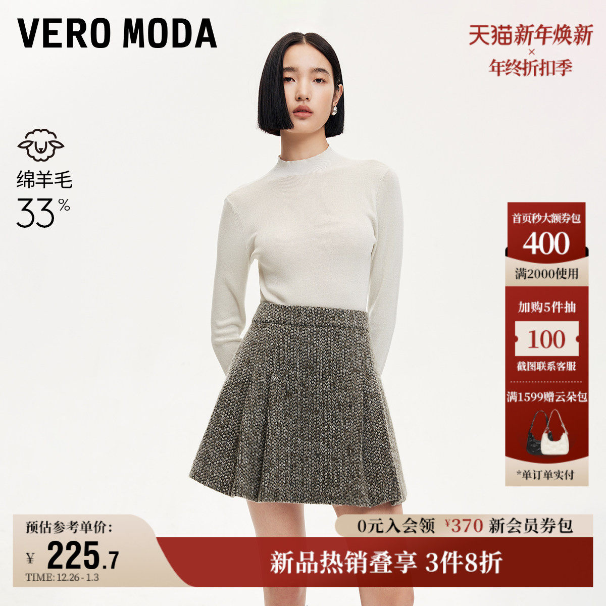 Vero Moda奥莱半身裙秋冬新款花色毛呢高腰百褶时尚减龄短裙流行