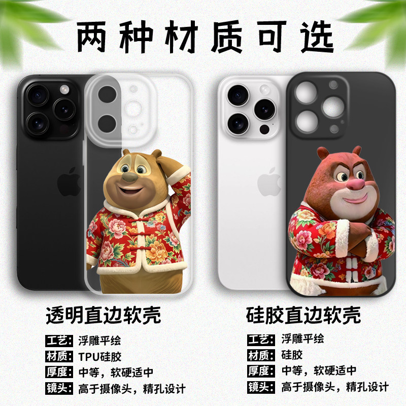 东北花棉袄熊大熊二手机壳适用苹果17promax小米红米透明硅胶软壳vivo荣耀oppo华为pura70保护套卡通过年新年