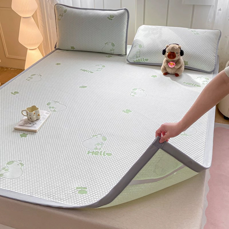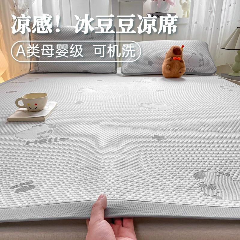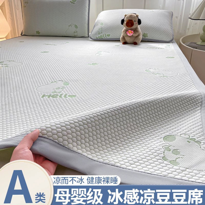 凉席A类夏季可机洗豆豆空调席冰丝席三件套学生宿舍软席冰丝床垫