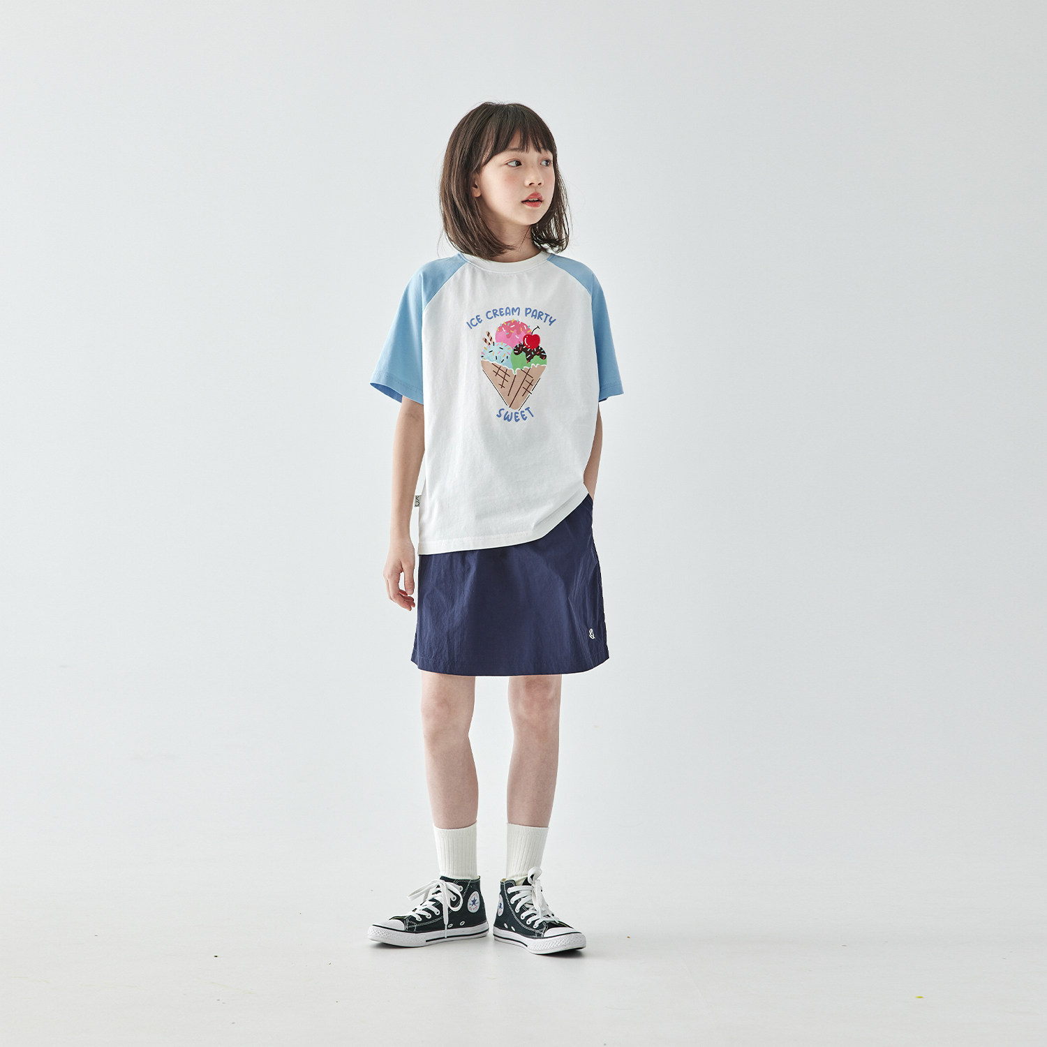 棵初2025年夏季新款亲子中大女童插肩拼色印花短袖T恤纯棉