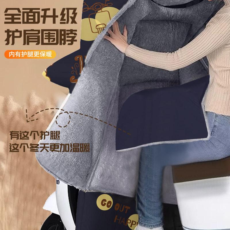 电动车挡风被冬季侧翼斗篷式加绒加厚电瓶防水防寒罩加宽款全包