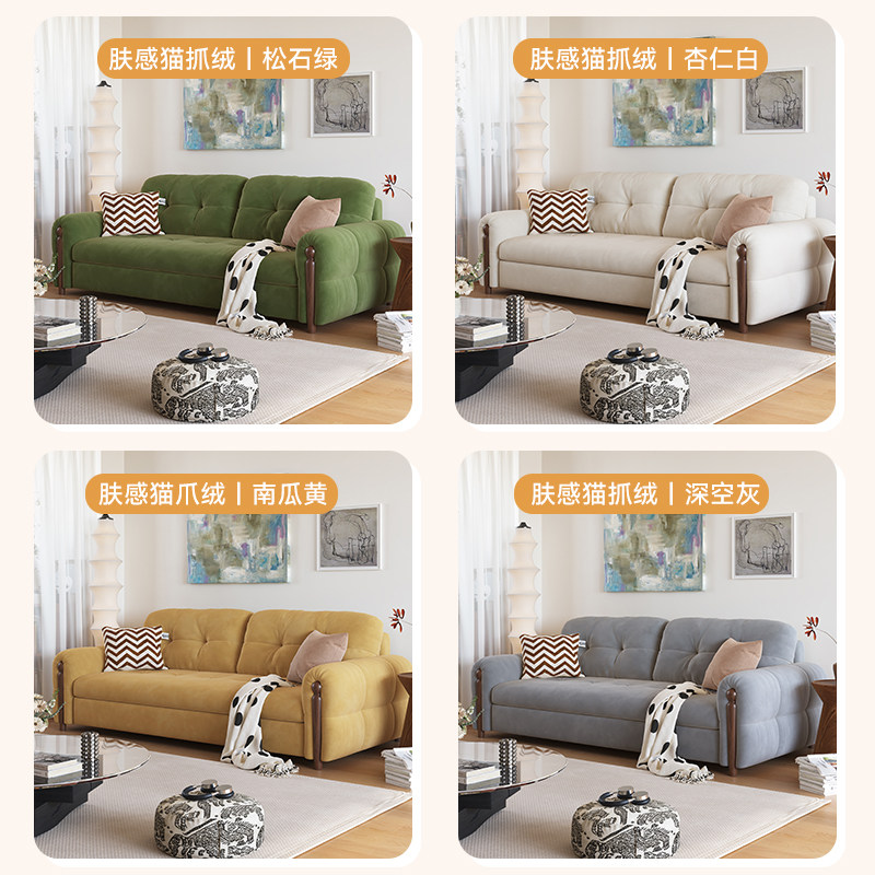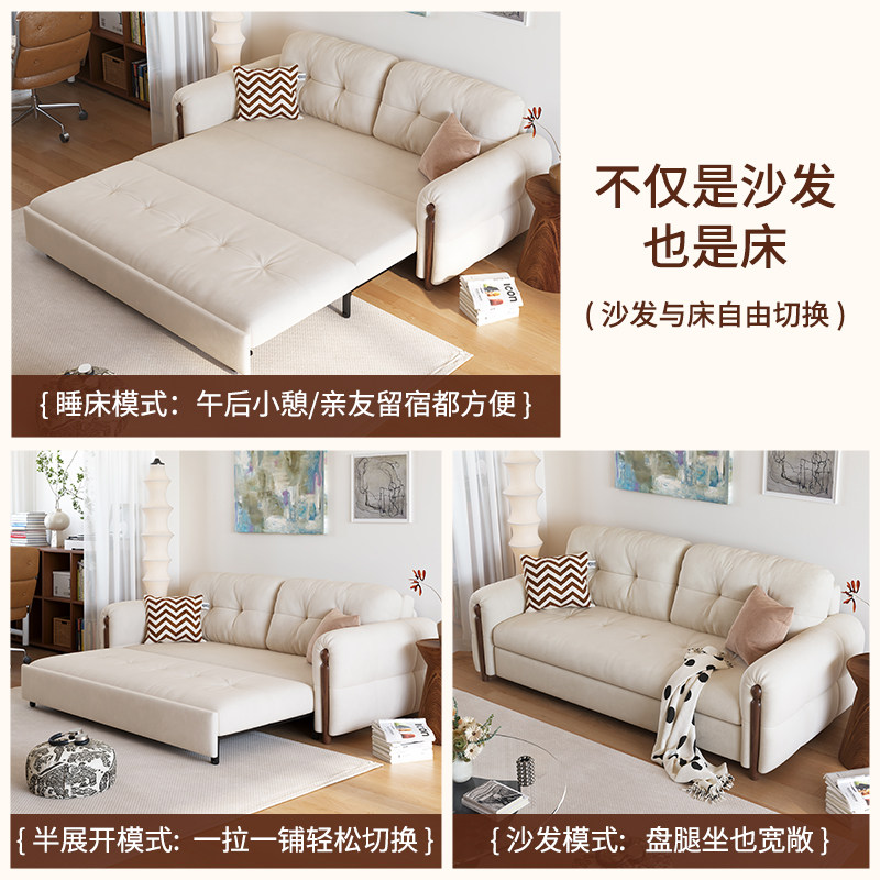 木宫匠家具复古实木折叠沙发床2025新款小户型客厅双人沙发床两用