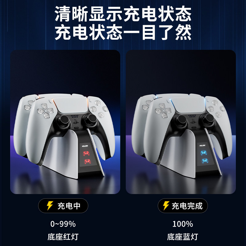 AOLION澳加狮 PS5手柄座充原装手柄充电底座收纳支架充电器适用索尼PS5 Slim PRO游戏主机配件PS5精英手柄