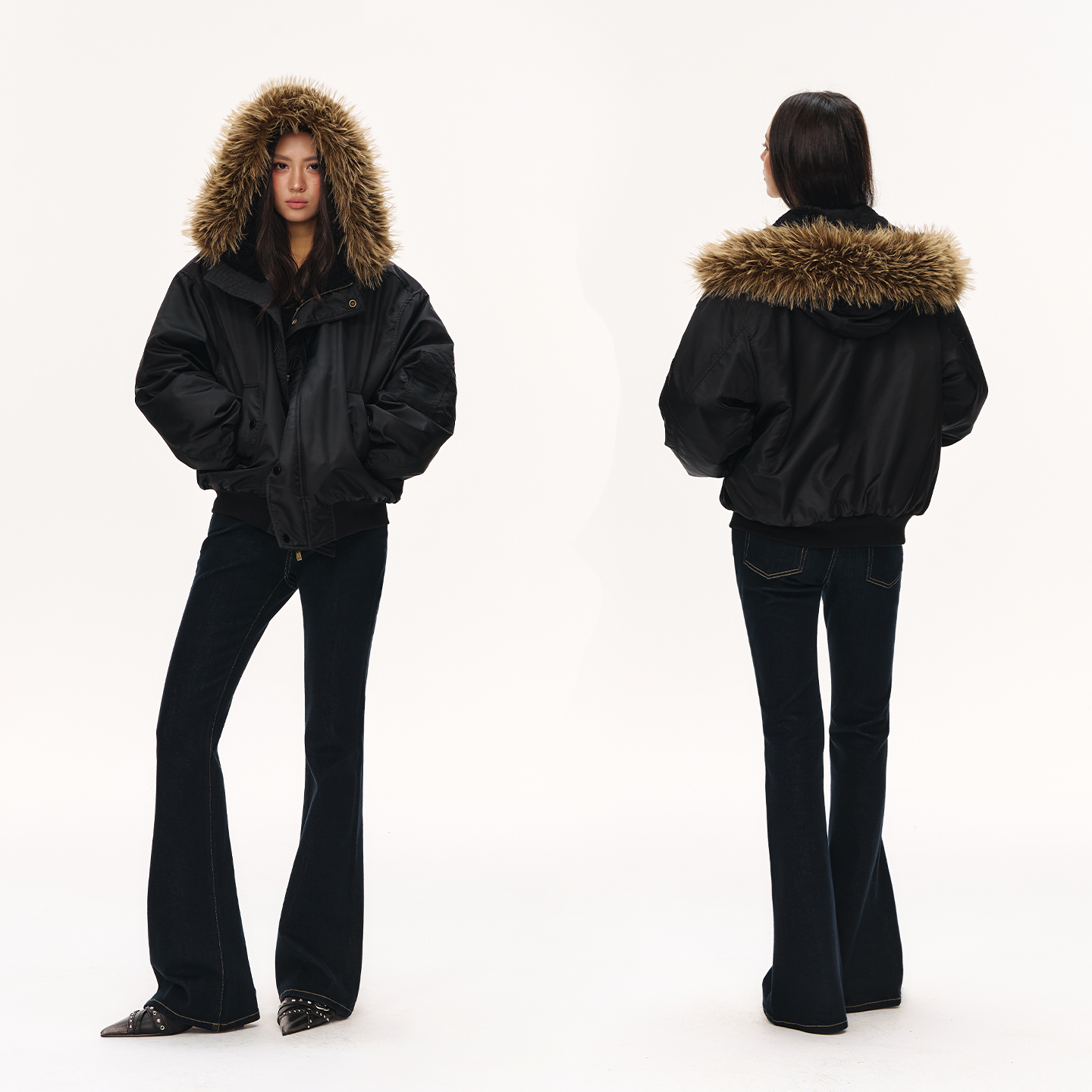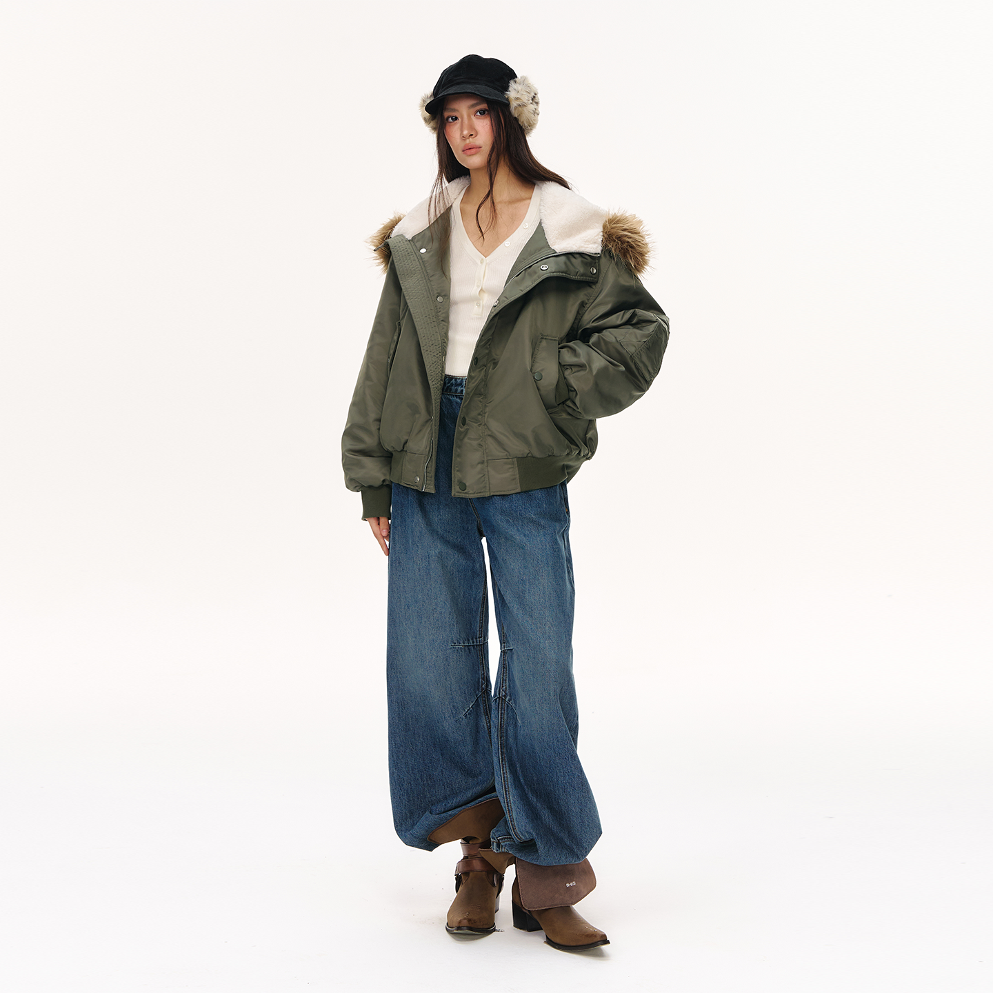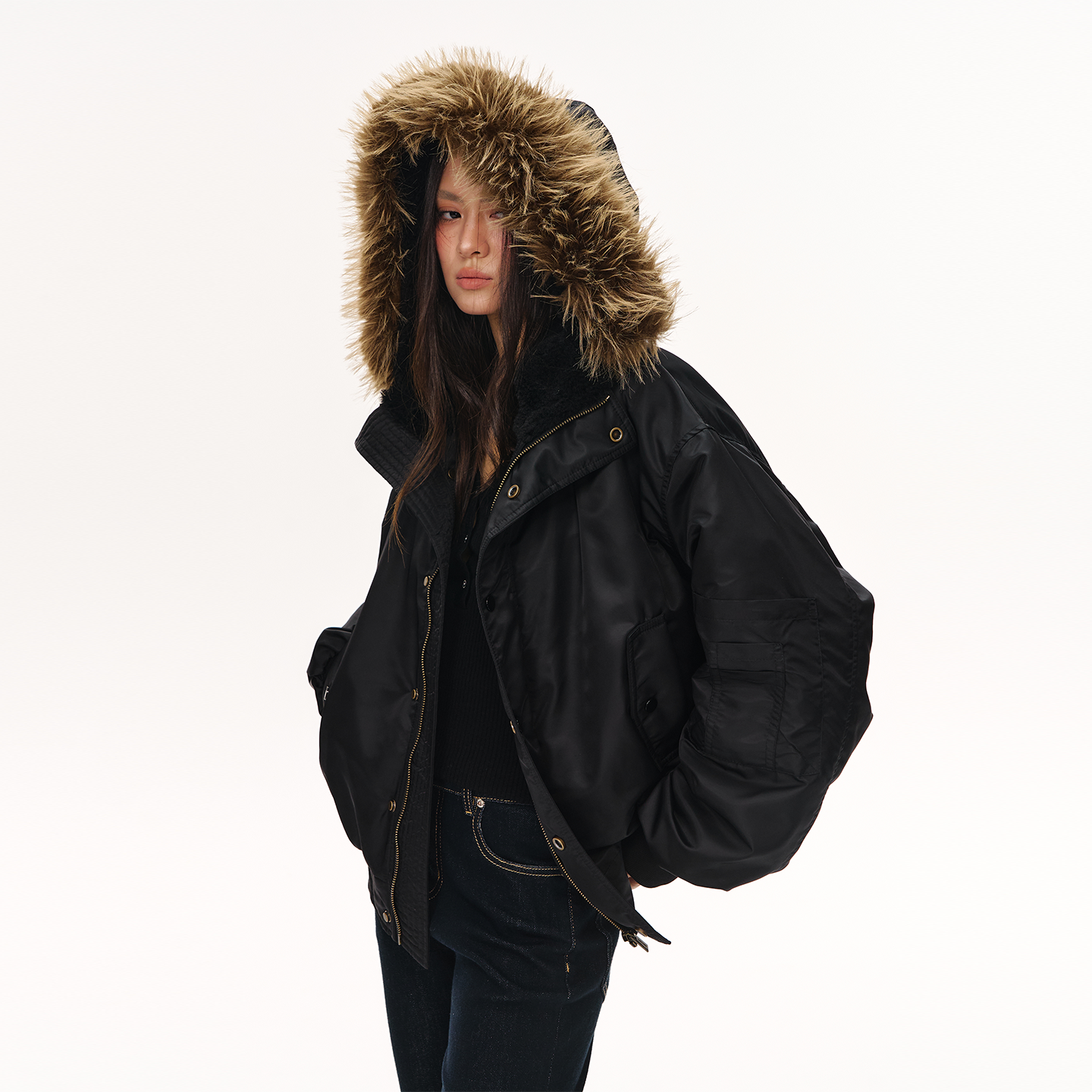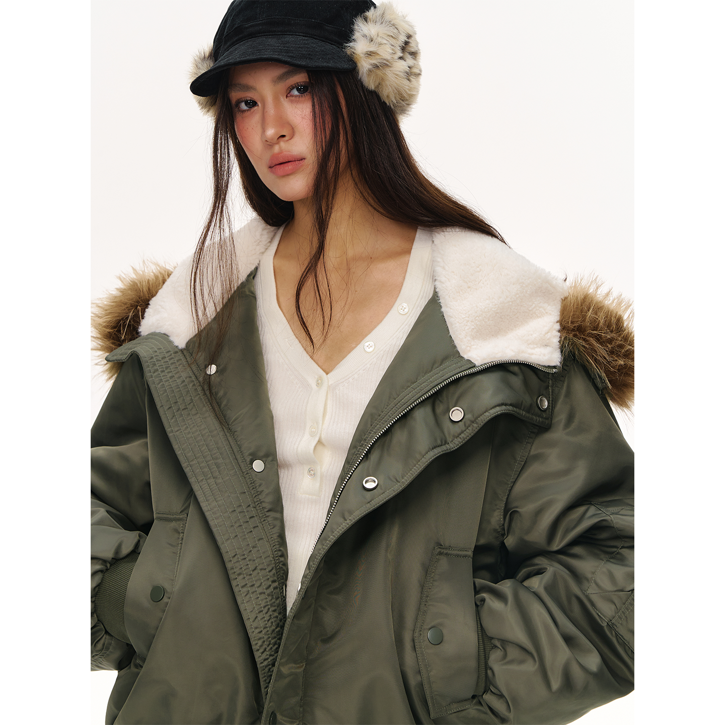 CLIMAX VISION复古可拆卸连帽毛领夹棉保暖外套派克服女夹克棉衣