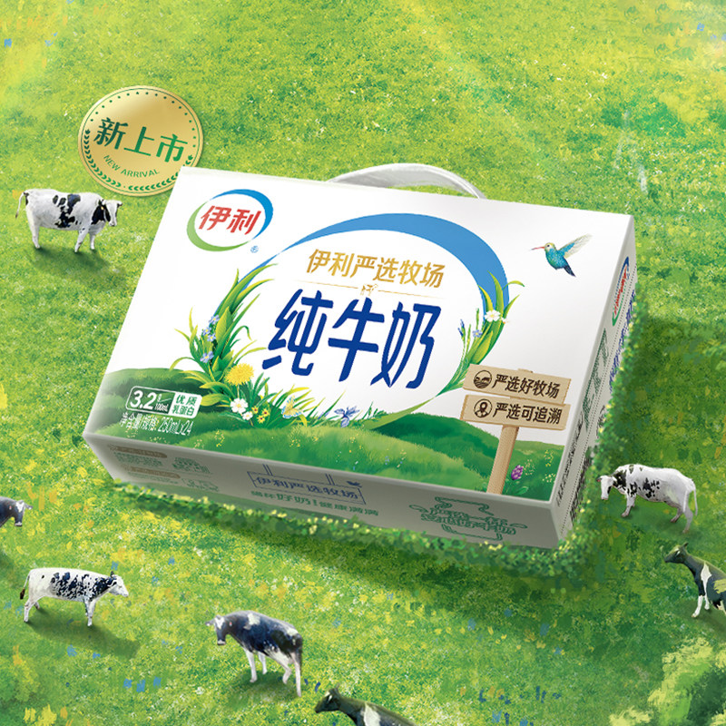 伊利严选牧场纯牛奶250ml*24盒学生儿童早餐牛奶正品特价全脂优质