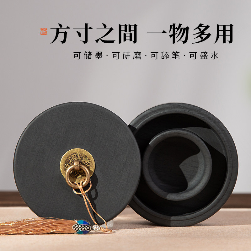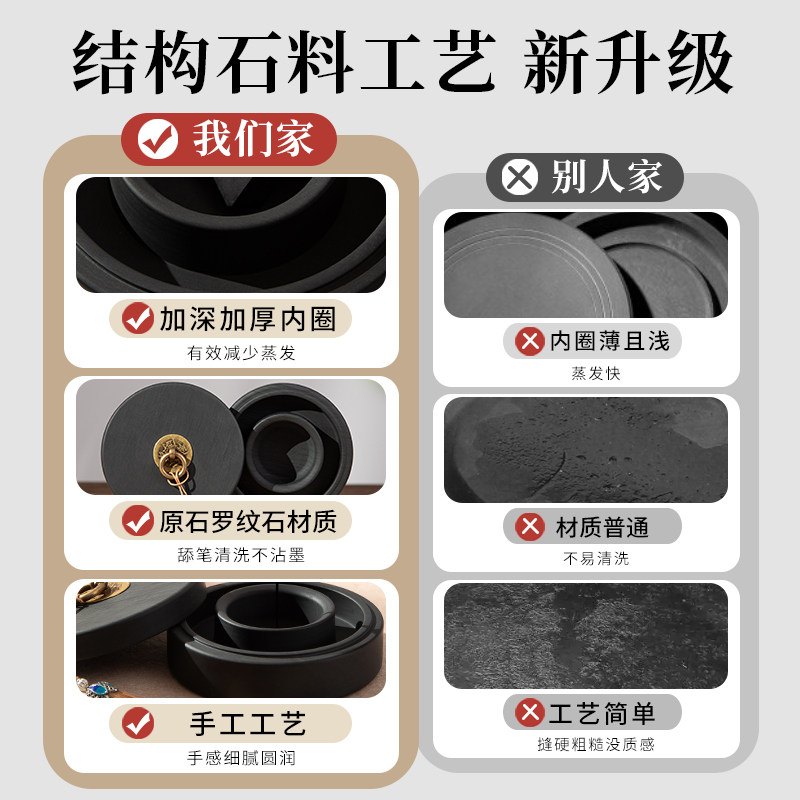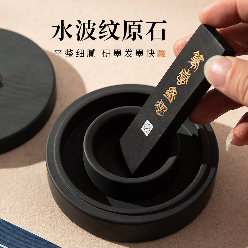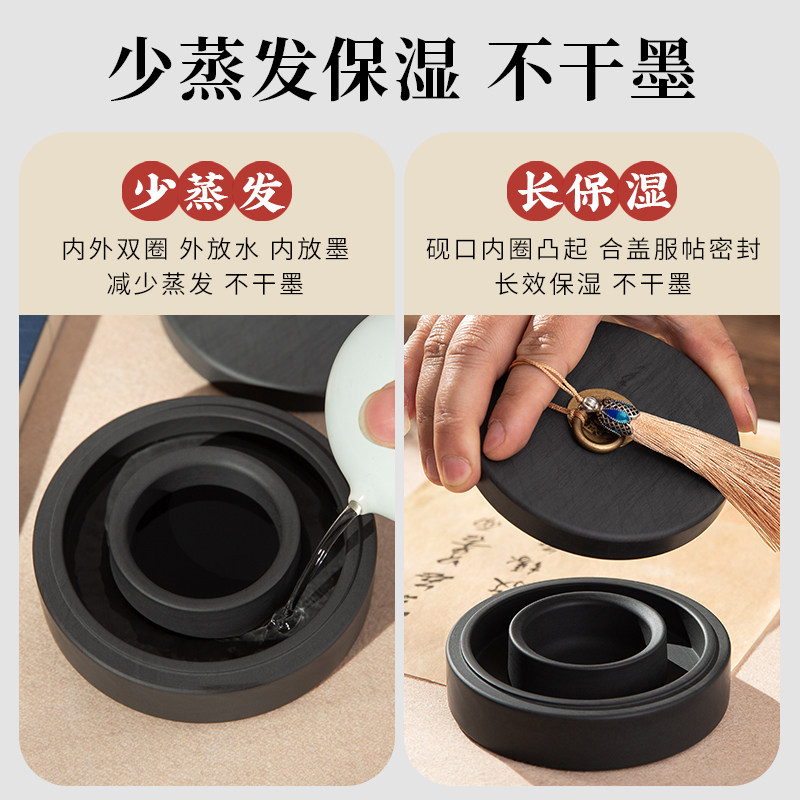 梅林笔庄全新升级火锅砚台双圈保湿防蒸发不干墨毛笔墨水书法专用原石天然歙砚罗纹砚墨盒墨盘可磨墨研墨墨池