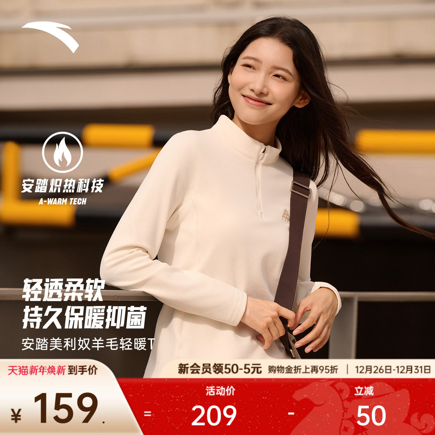 安踏羊毛T丨大地之壳半拉链长袖t恤女冬季美利奴羊毛打底运动上衣