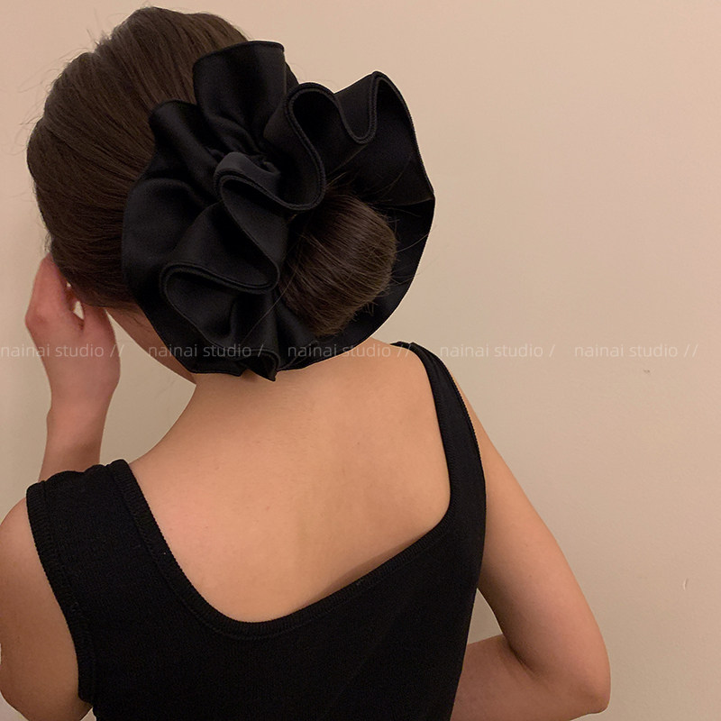 许妍同款大肠发圈~缎面大号丸子头褶皱高级感韩系ins头绳女发绳潮
