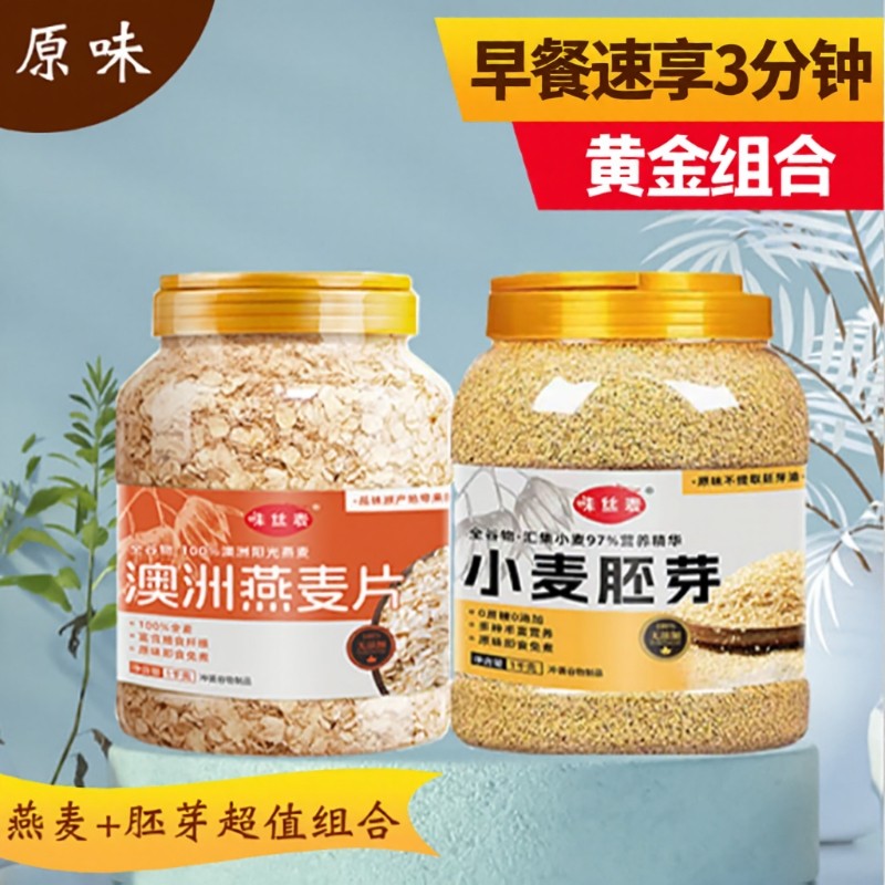 黄金组合燕麦片早餐即食冲饮原味纯麦片学生代餐食品胚芽免煮冲泡