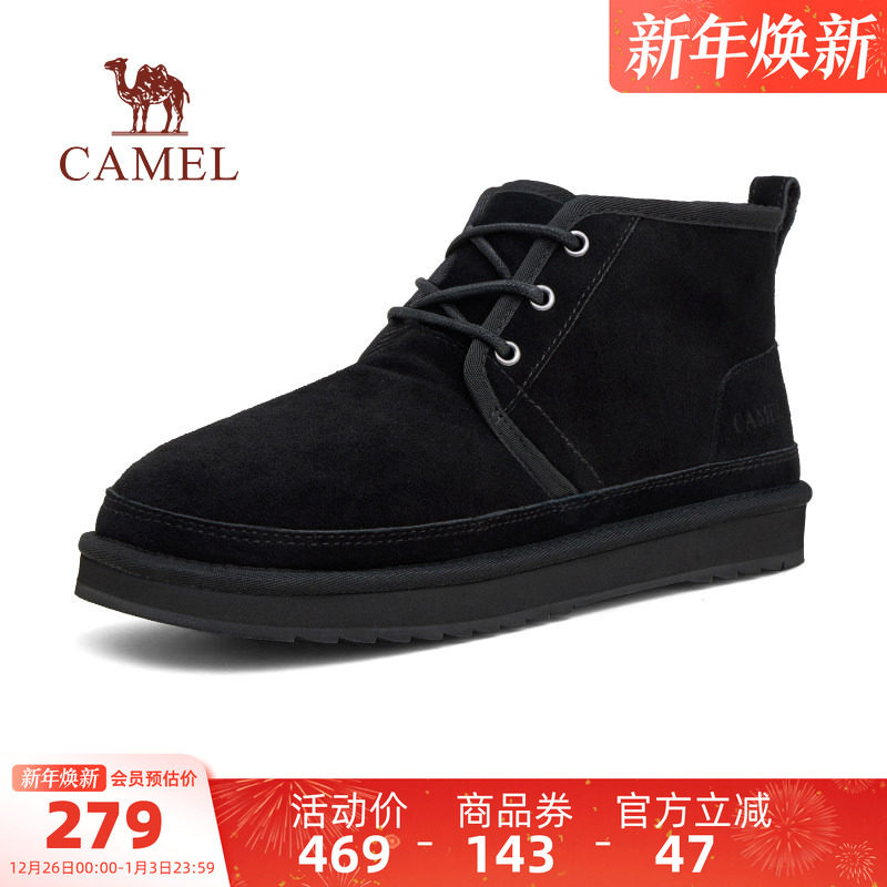 骆驼男鞋雪地靴冬季新款户外防滑防寒加绒东北保暖皮毛一体棉鞋男