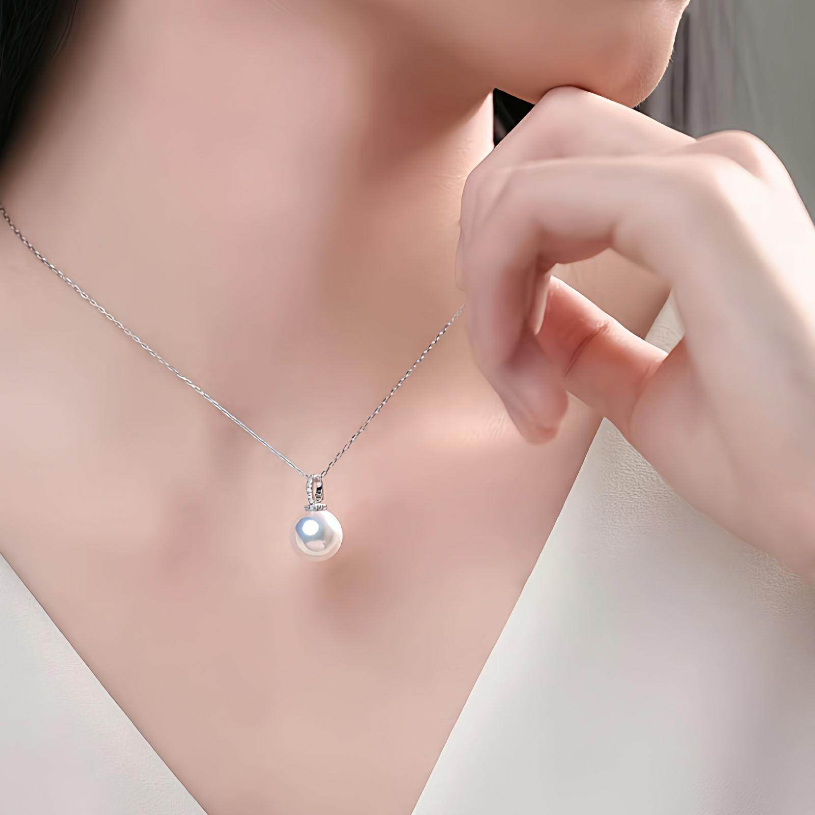 梵宝雅阁诸暨淡水珍珠吊坠女S925银正圆奶嘴款万能扣项链精致礼物