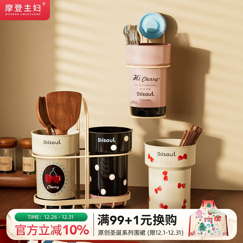 摩登主妇筷子勺子收纳盒家用高档新款沥水筷子筒筷子篓壁挂式筷笼