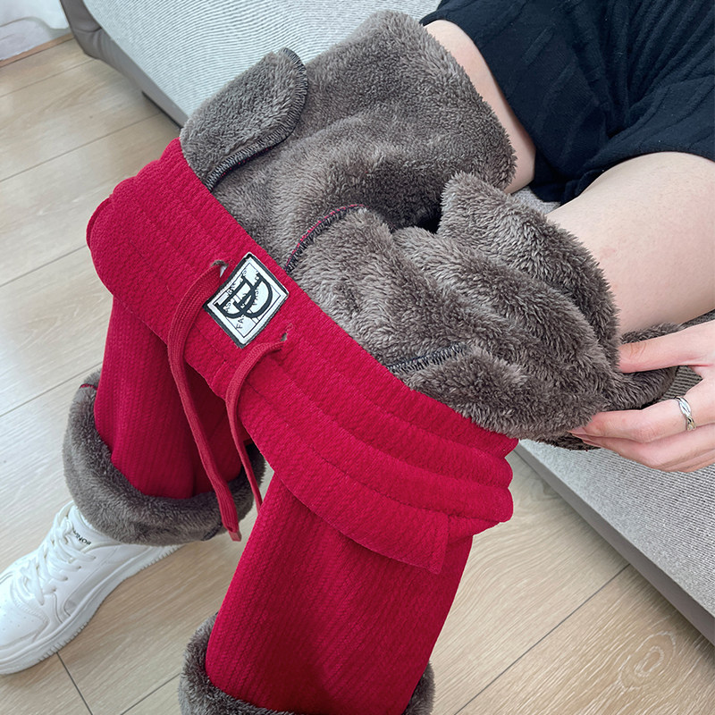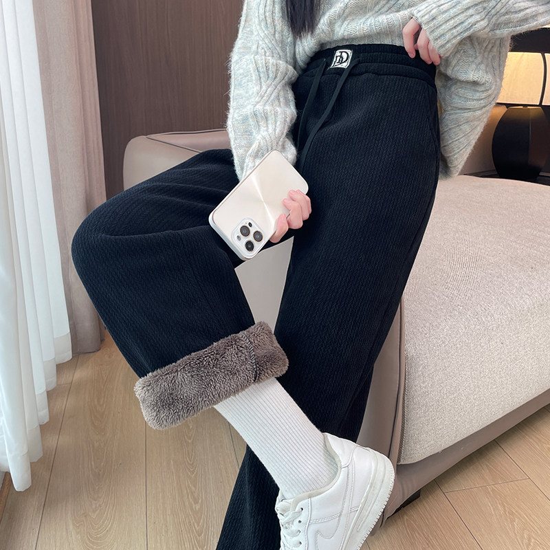加绒加厚直筒裤女2025秋冬新款大码东北特厚棉裤羊羔绒保暖阔腿裤