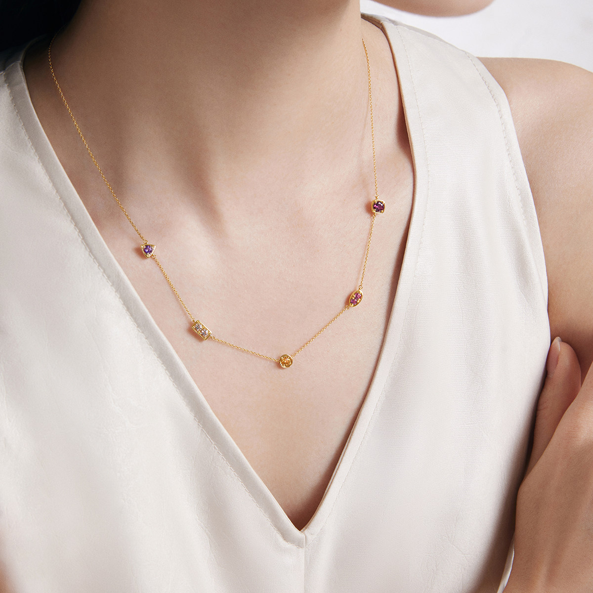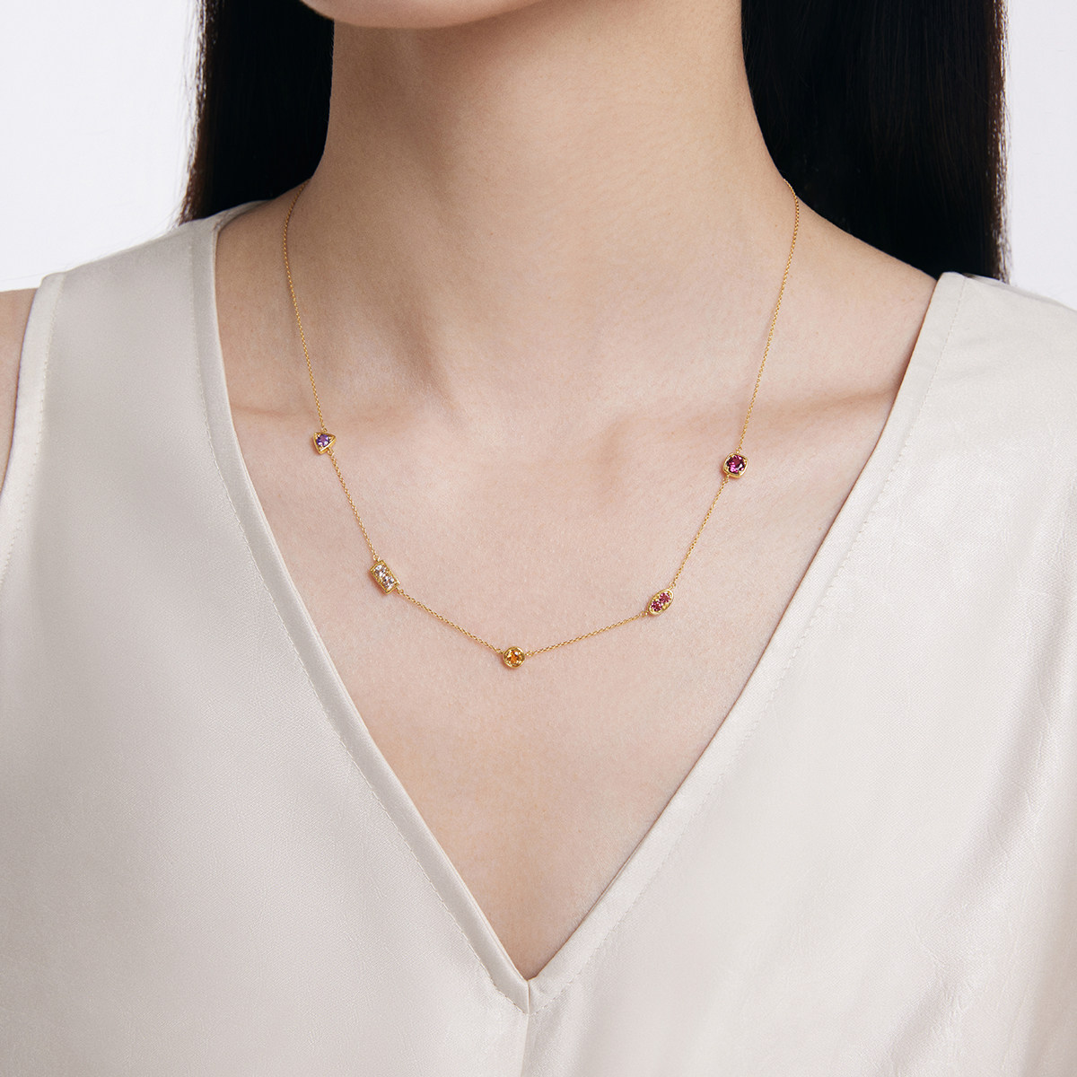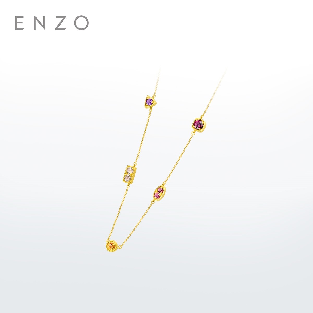 新款ENZO 18K金多彩宝石项链几何简约叠戴女送礼物