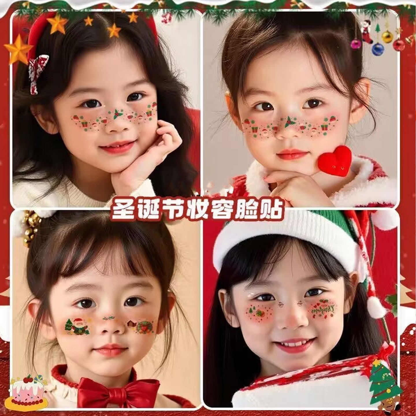 圣诞节装饰贴纸儿童脸部彩绘妆容贴小女孩幼儿园文艺晚会腮红化妆贴平安夜cos装扮拍照打卡道具防水纹身贴纸