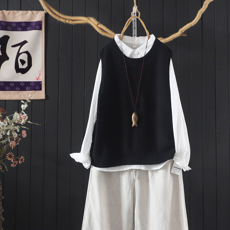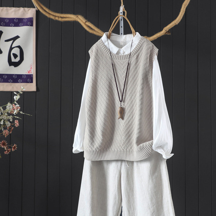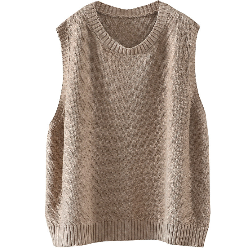 文艺宽松毛线马甲女2024春新品简约百搭圆领斜纹无袖毛衣针织外套