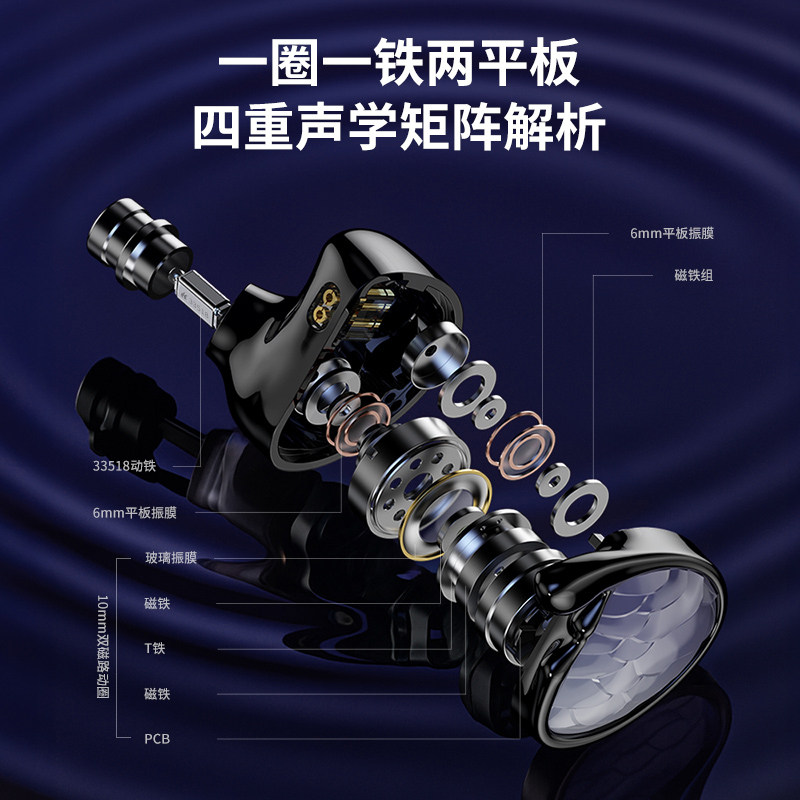 觅声双子座Pro有线耳机入耳式发烧级HiFi音质手机电脑电竞fps游戏