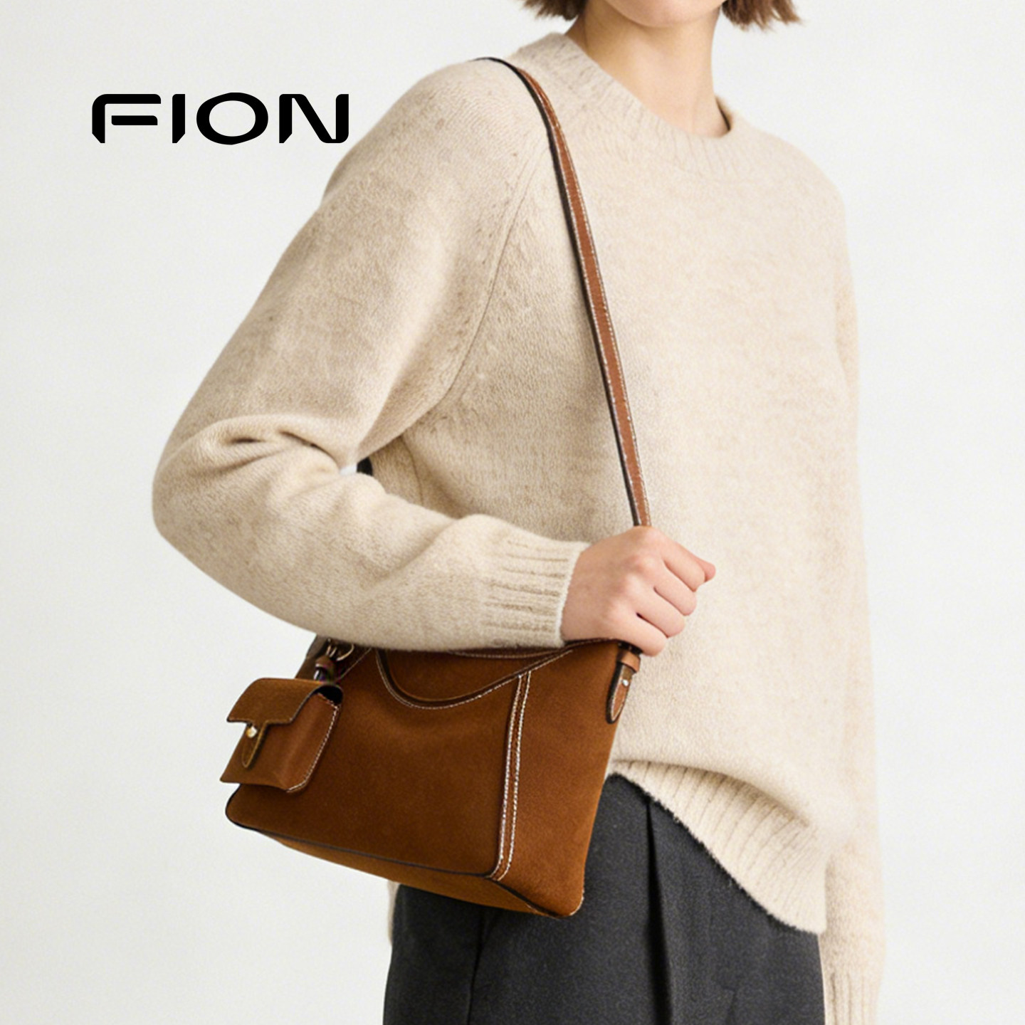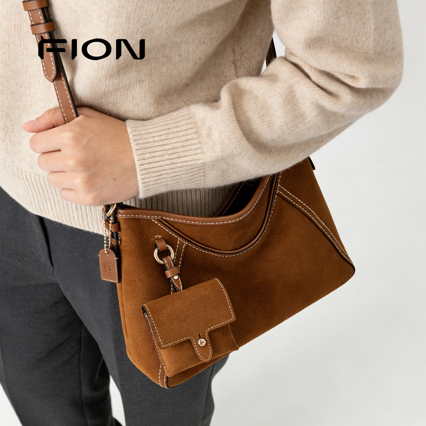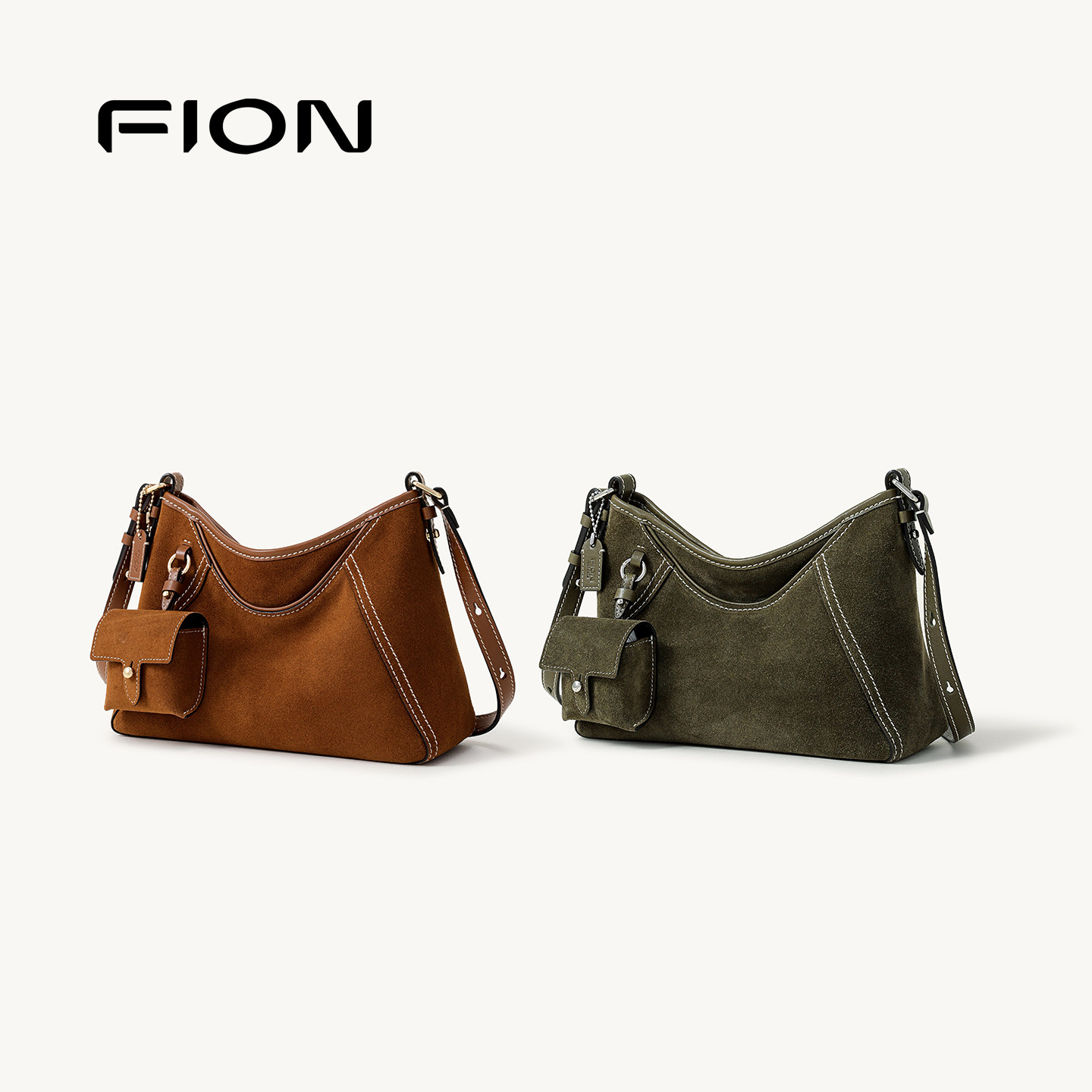 Fion/菲安妮女包腋下包新款hobo包高级感轻奢反绒皮单肩斜挎软包