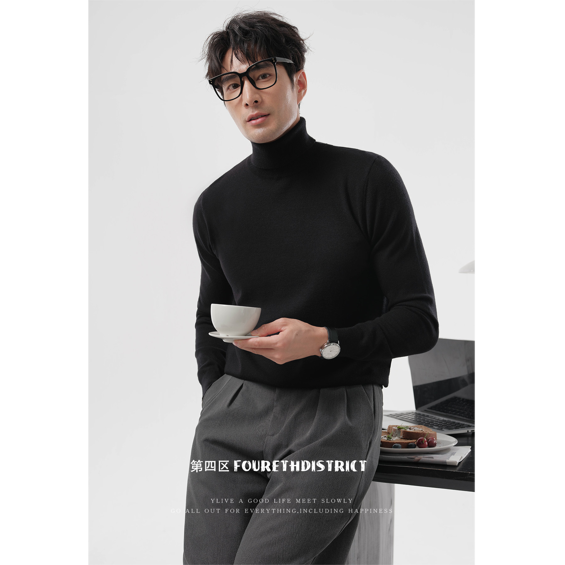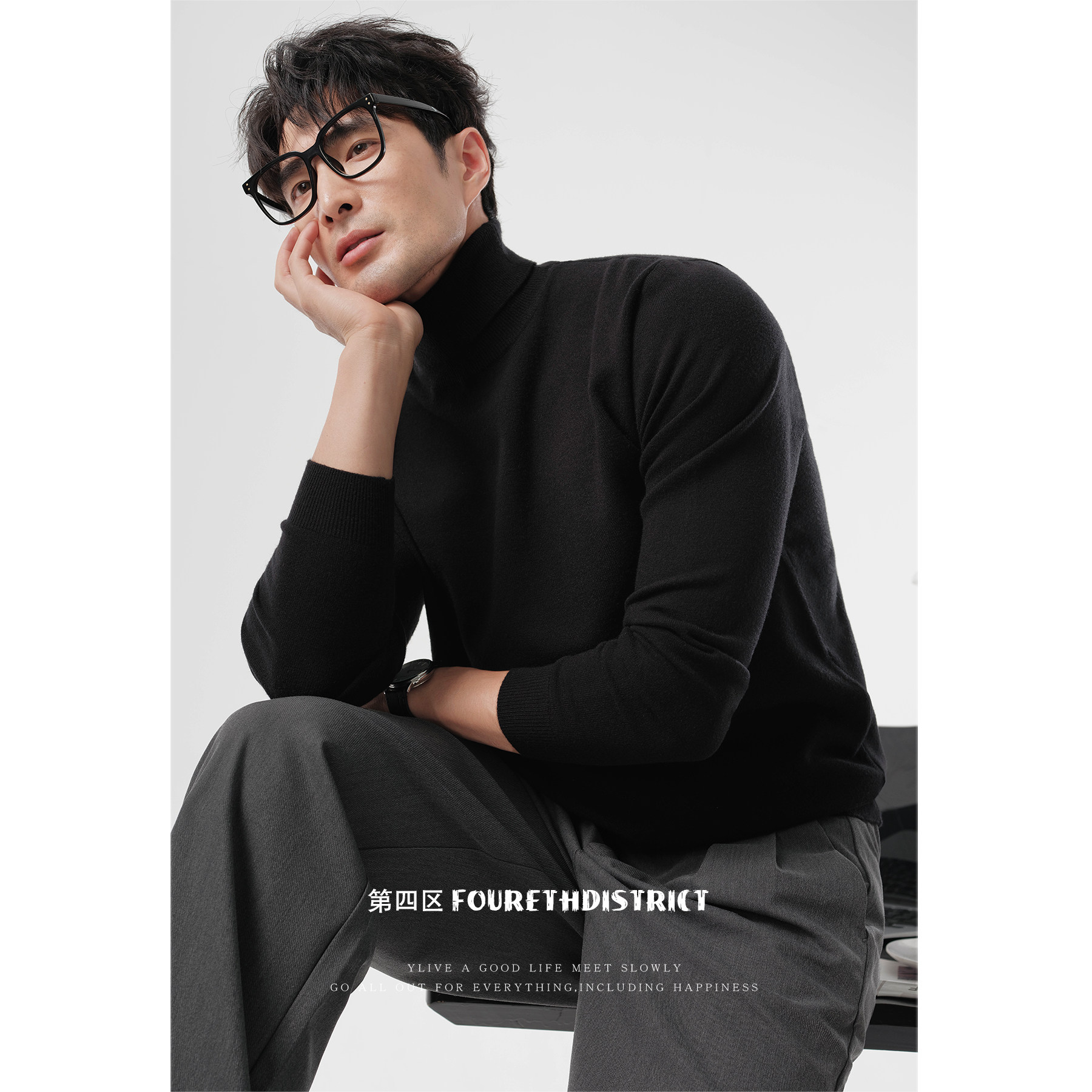 第四区 羊毛衫可翻高领毛衣男士加厚冬季保暖内搭针织打底衫上衣