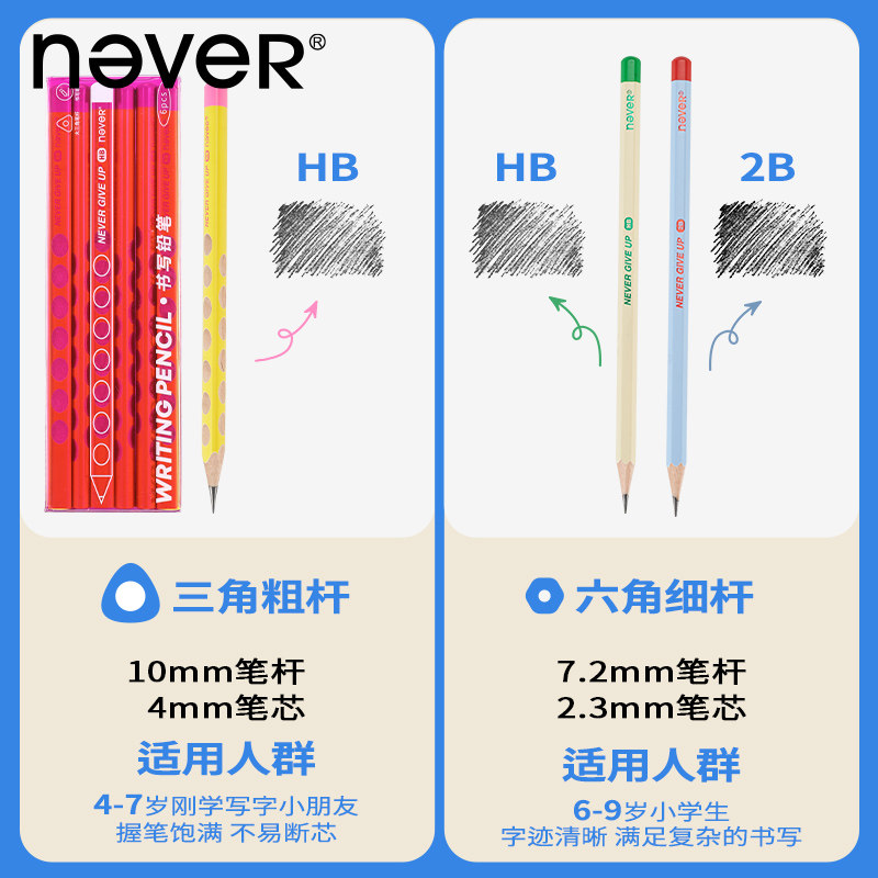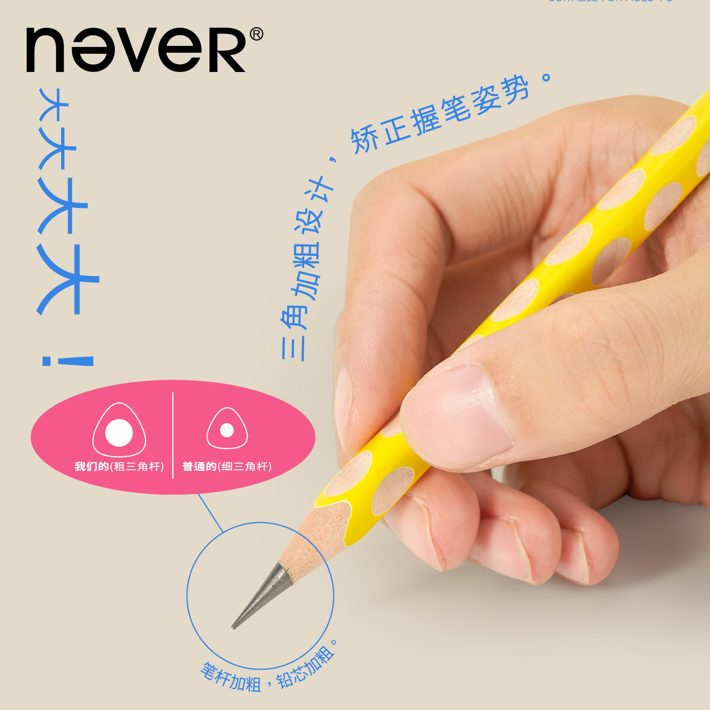 【升级版】never乐活铅笔无毒HB2B六角杆粗三角洞洞笔矫正握姿儿童铅笔小学生专用一年级练字素描笔涂卡笔