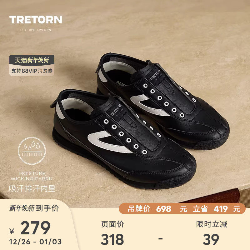 瑞典TRETORN新款薄底帆布男女情侣免系带一脚蹬懒人鞋