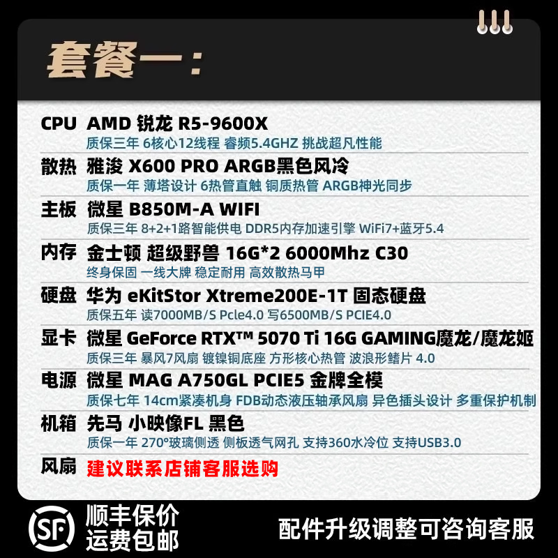 装机猿玩家店 微星 RTX5070Ti魔龙/魔龙姬/7800X3D/9600X电竞主机