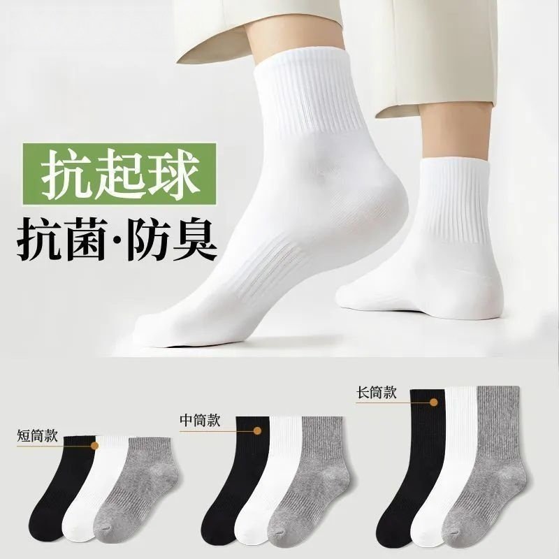 【新疆棉】7A抗菌袜子男士四季款中短筒纯色运动抗菌透气防臭袜子