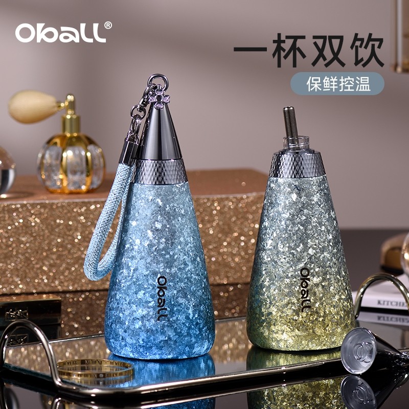 oball纯钛保温杯女生高颜值吸管2025钛女神便携新款杯子外带饮水