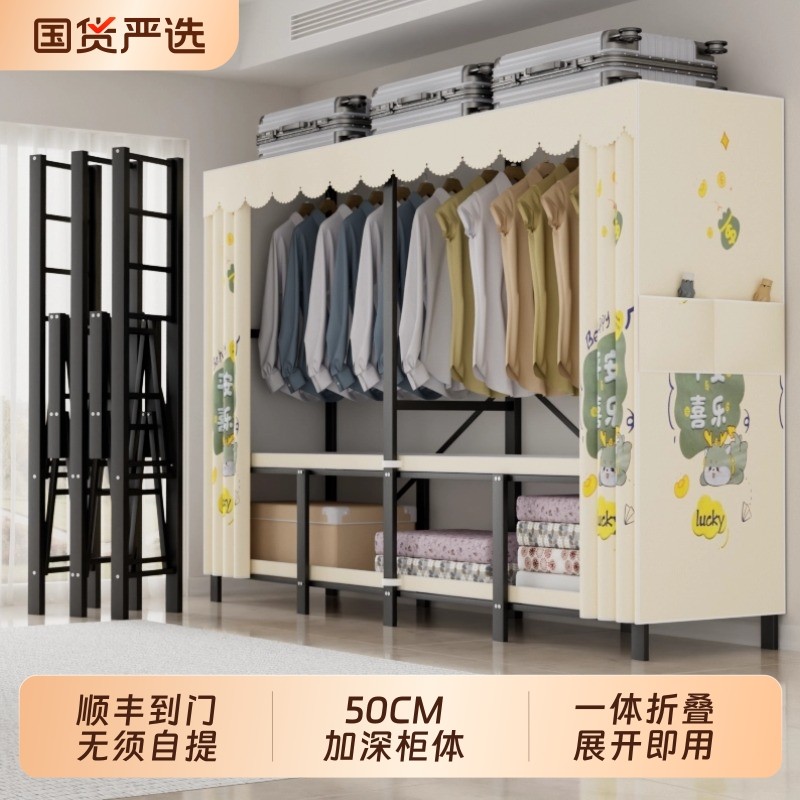免安装折叠家用衣柜卧室简易衣柜出租房结实加厚耐用钢架收纳衣橱