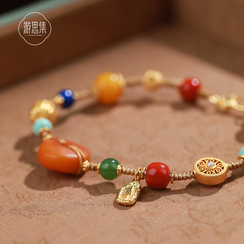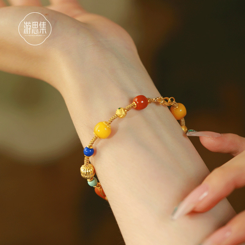 游思集天然蜜蜡南红多宝手串女新中式国风设计师手工编织藏式手链