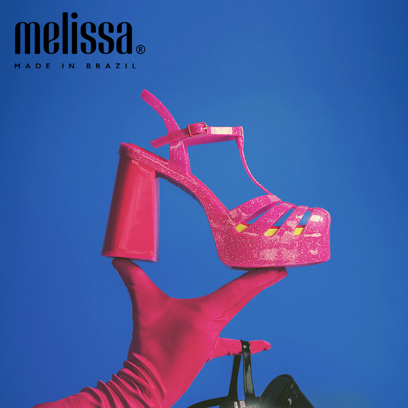 Melissa梅丽莎2023款女士时尚复古气质粗高跟凉鞋果冻鞋33818